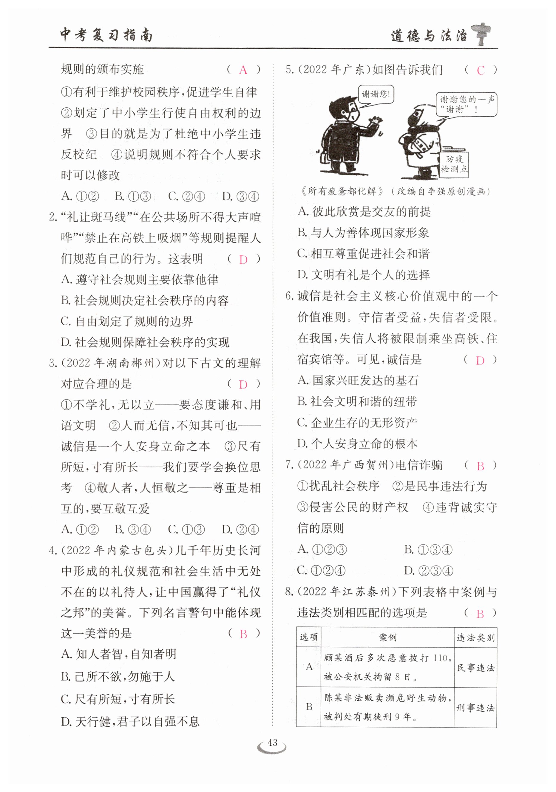 注:目前有些书本章节名称可能整理的还不是很完善,但都是按照顺序排列的,请同学们按照顺序仔细查找。练习册 2023年新中考复习指南长江少年儿童出版社道德与法治宜昌专版 答案主要是用来给同学们做完题方便对答案用的,请勿直接抄袭。