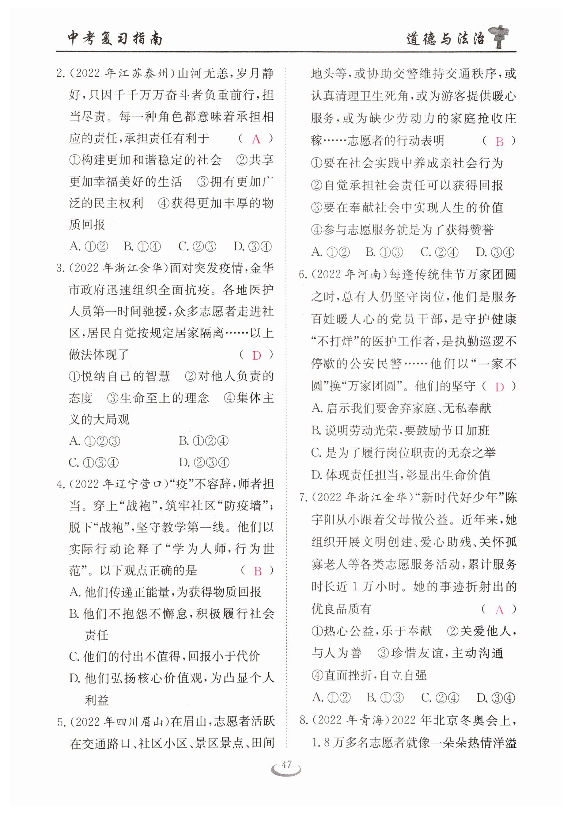 注:目前有些书本章节名称可能整理的还不是很完善,但都是按照顺序排列的,请同学们按照顺序仔细查找。练习册 2023年新中考复习指南长江少年儿童出版社道德与法治宜昌专版 答案主要是用来给同学们做完题方便对答案用的,请勿直接抄袭。