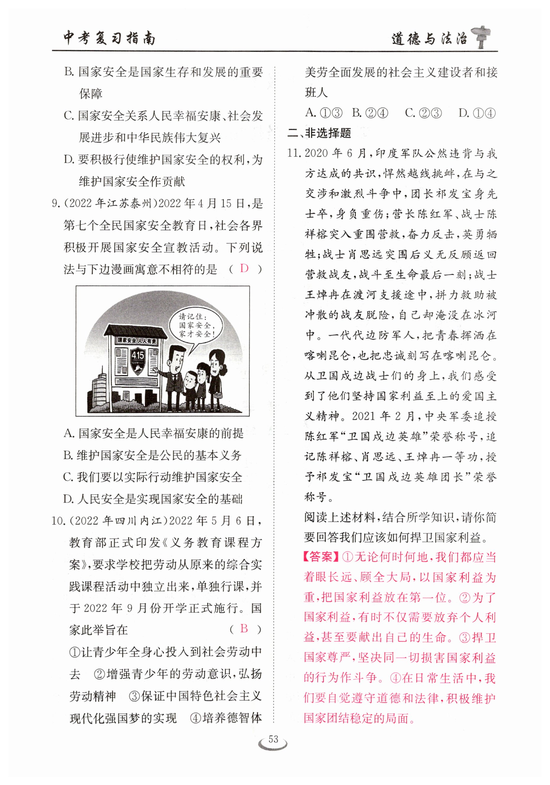 注:目前有些书本章节名称可能整理的还不是很完善,但都是按照顺序排列的,请同学们按照顺序仔细查找。练习册 2023年新中考复习指南长江少年儿童出版社道德与法治宜昌专版 答案主要是用来给同学们做完题方便对答案用的,请勿直接抄袭。