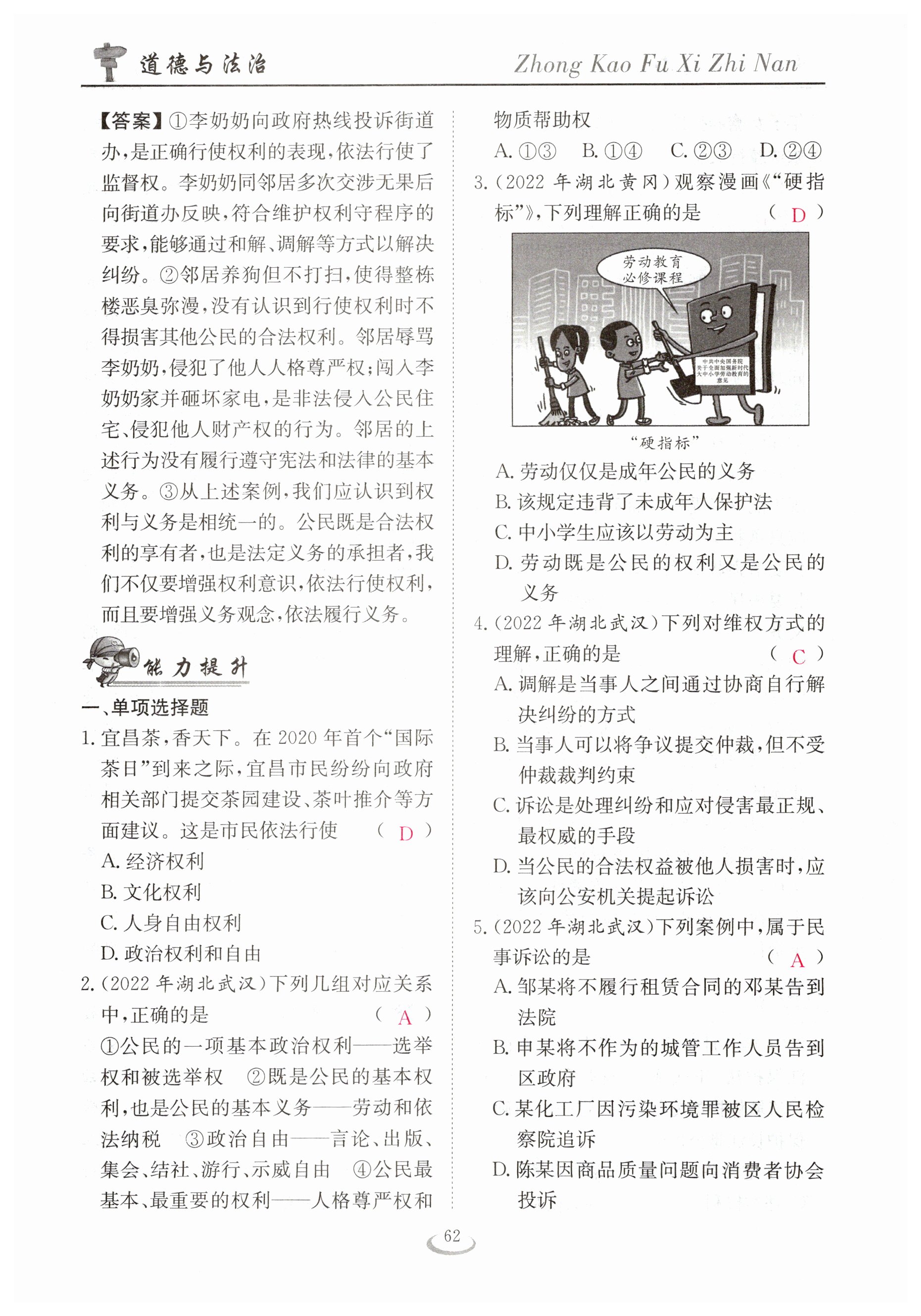 注:目前有些书本章节名称可能整理的还不是很完善,但都是按照顺序排列的,请同学们按照顺序仔细查找。练习册 2023年新中考复习指南长江少年儿童出版社道德与法治宜昌专版 答案主要是用来给同学们做完题方便对答案用的,请勿直接抄袭。