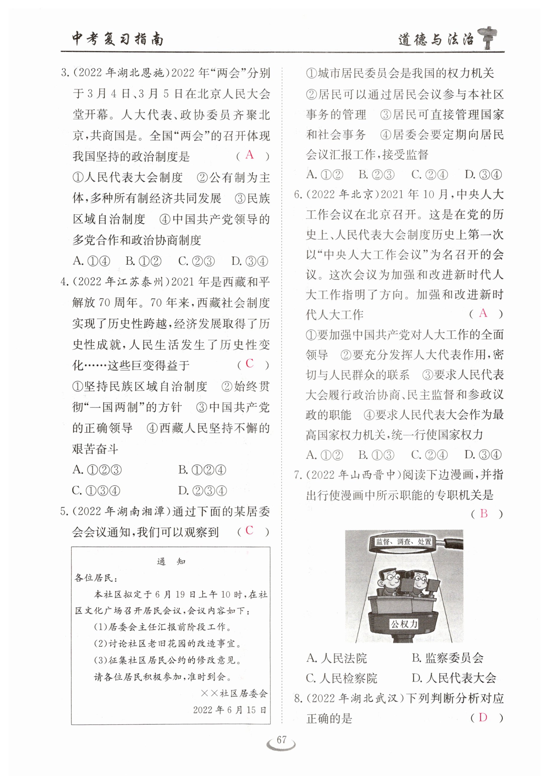 注:目前有些书本章节名称可能整理的还不是很完善,但都是按照顺序排列的,请同学们按照顺序仔细查找。练习册 2023年新中考复习指南长江少年儿童出版社道德与法治宜昌专版 答案主要是用来给同学们做完题方便对答案用的,请勿直接抄袭。