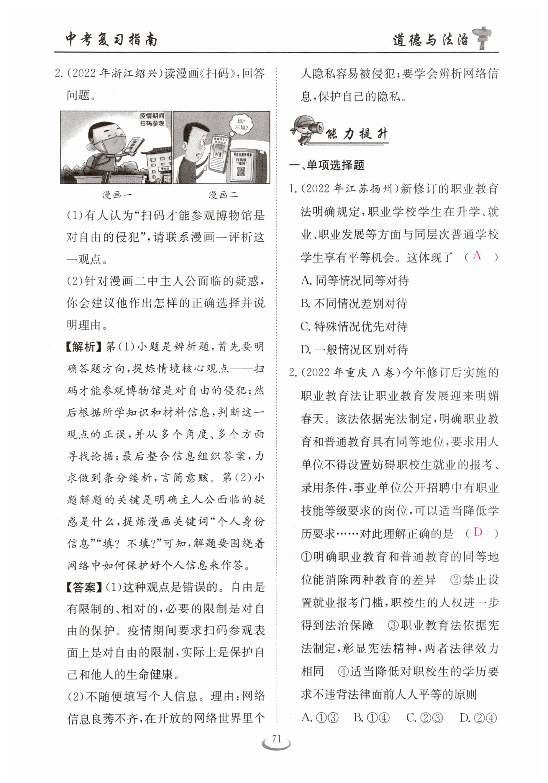 注:目前有些书本章节名称可能整理的还不是很完善,但都是按照顺序排列的,请同学们按照顺序仔细查找。练习册 2023年新中考复习指南长江少年儿童出版社道德与法治宜昌专版 答案主要是用来给同学们做完题方便对答案用的,请勿直接抄袭。