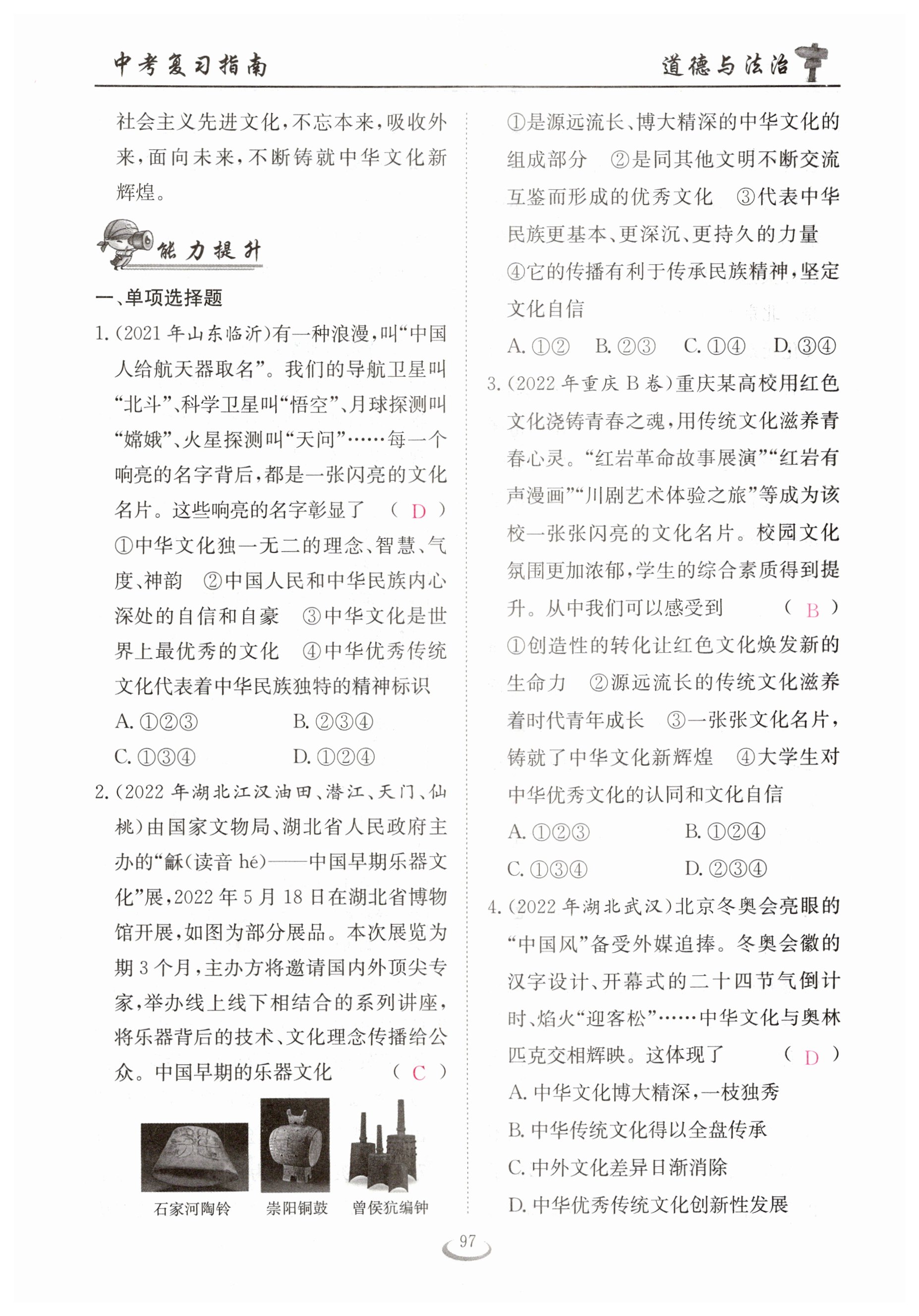 注:目前有些书本章节名称可能整理的还不是很完善,但都是按照顺序排列的,请同学们按照顺序仔细查找。练习册 2023年新中考复习指南长江少年儿童出版社道德与法治宜昌专版 答案主要是用来给同学们做完题方便对答案用的,请勿直接抄袭。