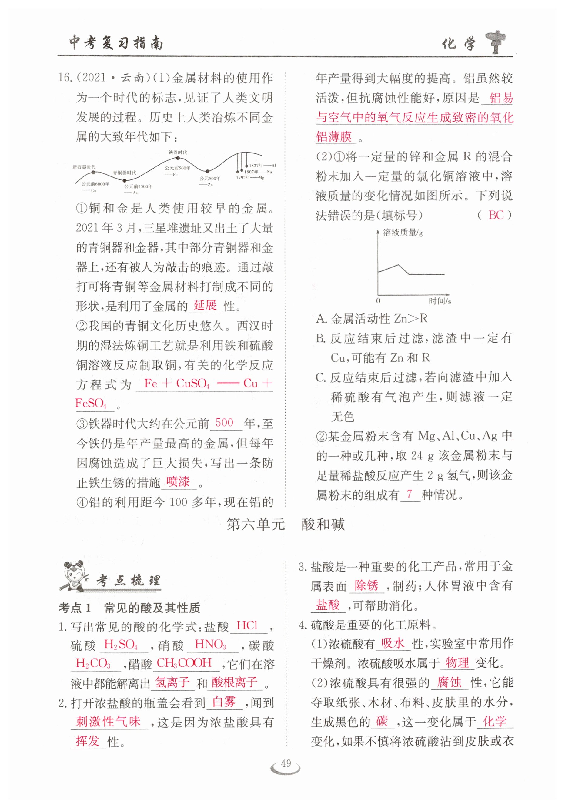 注:目前有些书本章节名称可能整理的还不是很完善,但都是按照顺序排列的,请同学们按照顺序仔细查找。练习册 2023年中考复习指南长江少年儿童出版社化学中考人教版 答案主要是用来给同学们做完题方便对答案用的,请勿直接抄袭。