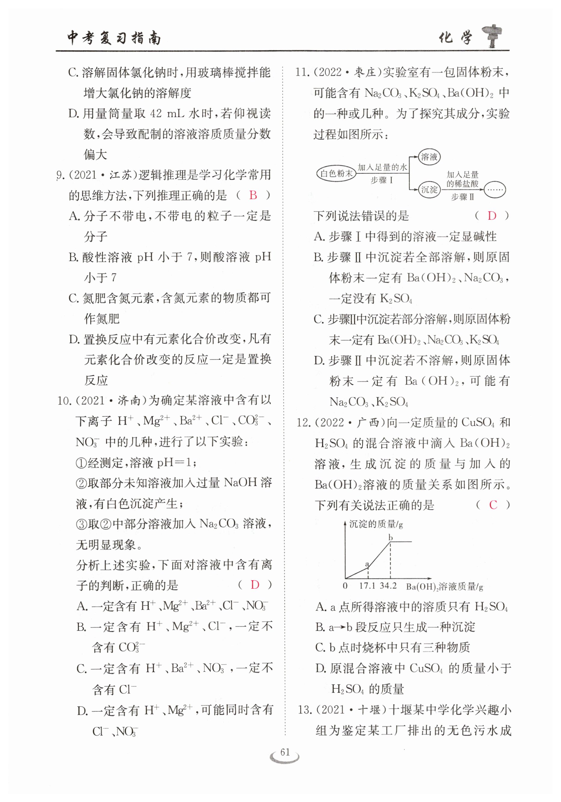 注:目前有些书本章节名称可能整理的还不是很完善,但都是按照顺序排列的,请同学们按照顺序仔细查找。练习册 2023年中考复习指南长江少年儿童出版社化学中考人教版 答案主要是用来给同学们做完题方便对答案用的,请勿直接抄袭。