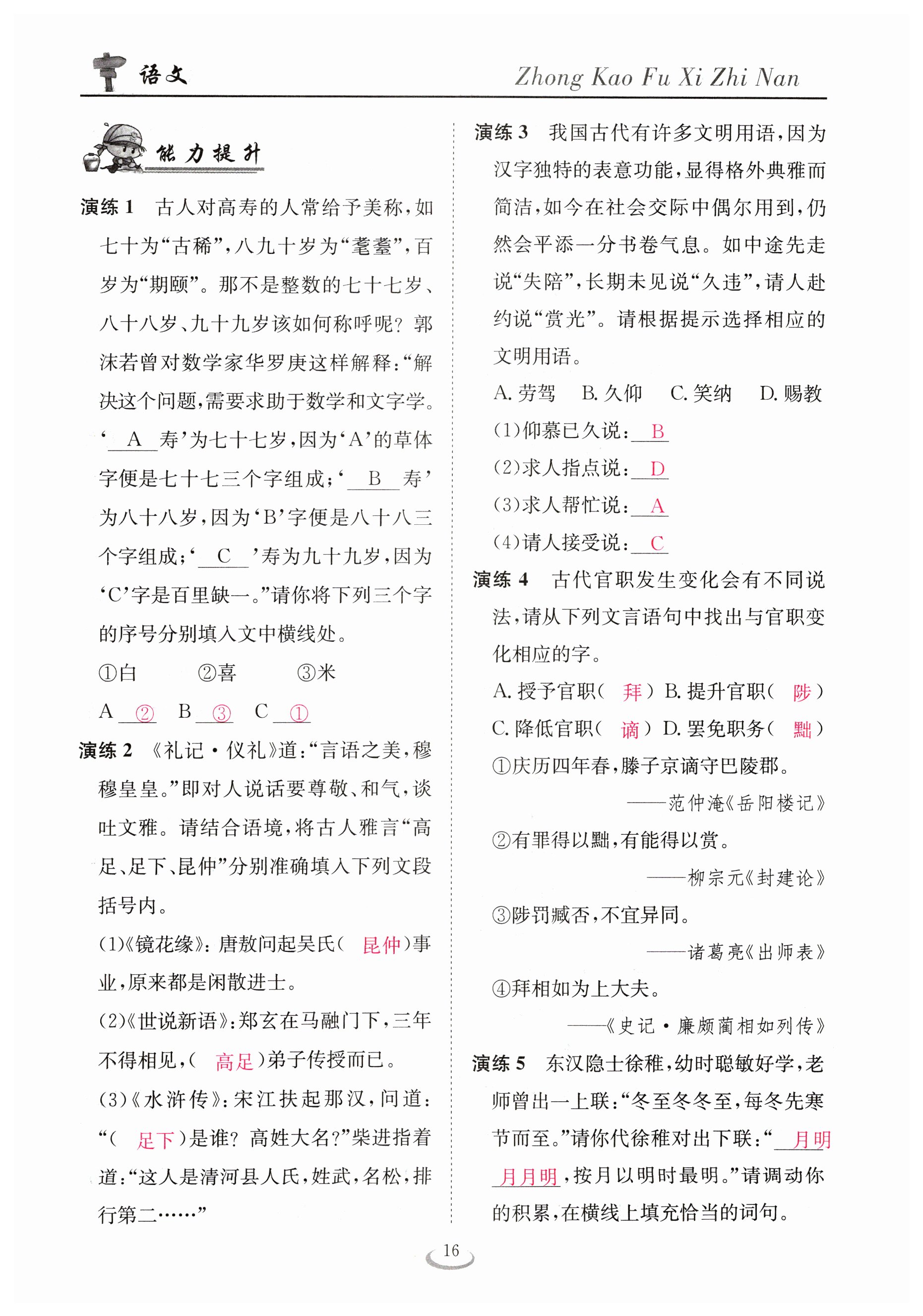 注:目前有些书本章节名称可能整理的还不是很完善,但都是按照顺序排列的,请同学们按照顺序仔细查找。练习册 2023年中考复习指南长江少年儿童出版社语文宜昌专版 答案主要是用来给同学们做完题方便对答案用的,请勿直接抄袭。