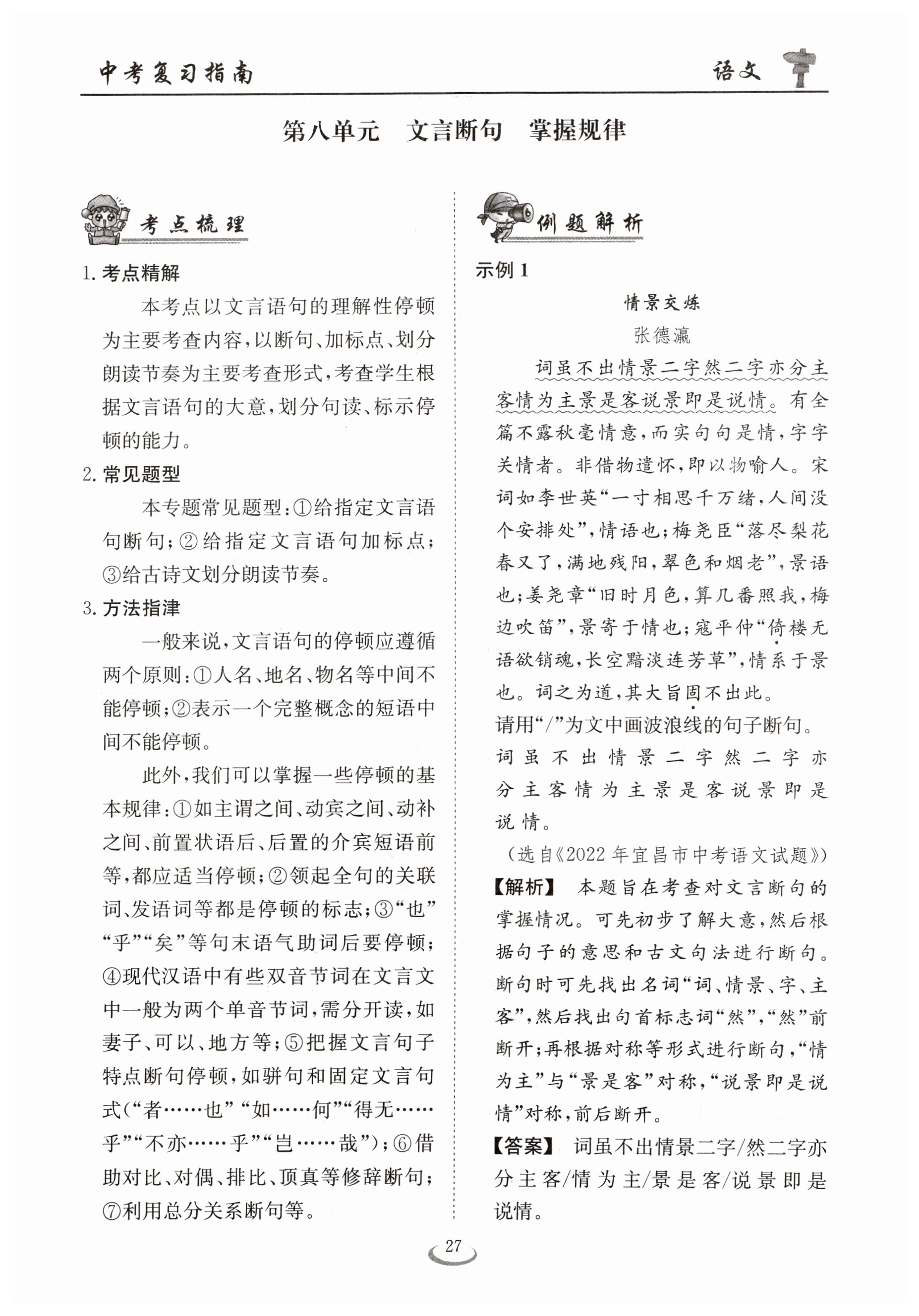 2023年中考复习指南长江少年儿童出版社语文宜昌专版