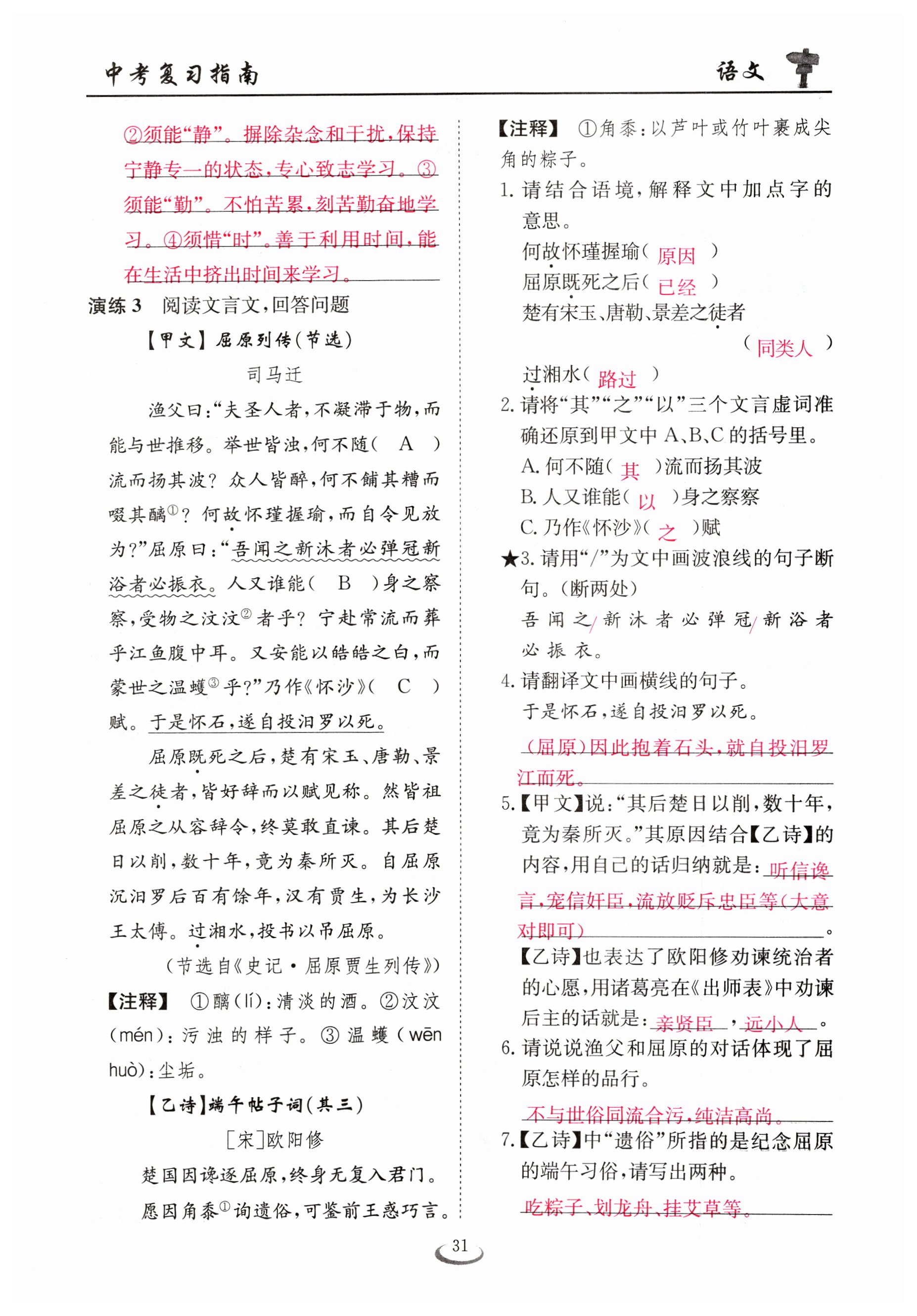 2023年中考复习指南长江少年儿童出版社语文宜昌专版
