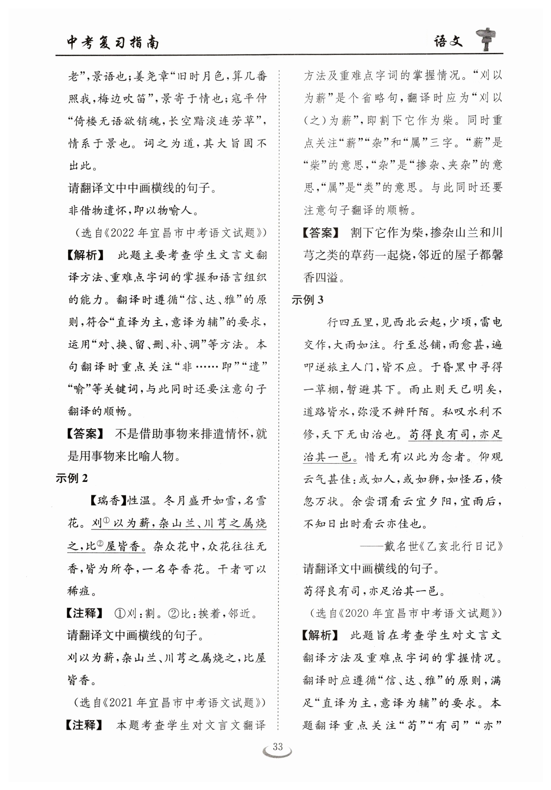 2023年中考复习指南长江少年儿童出版社语文宜昌专版