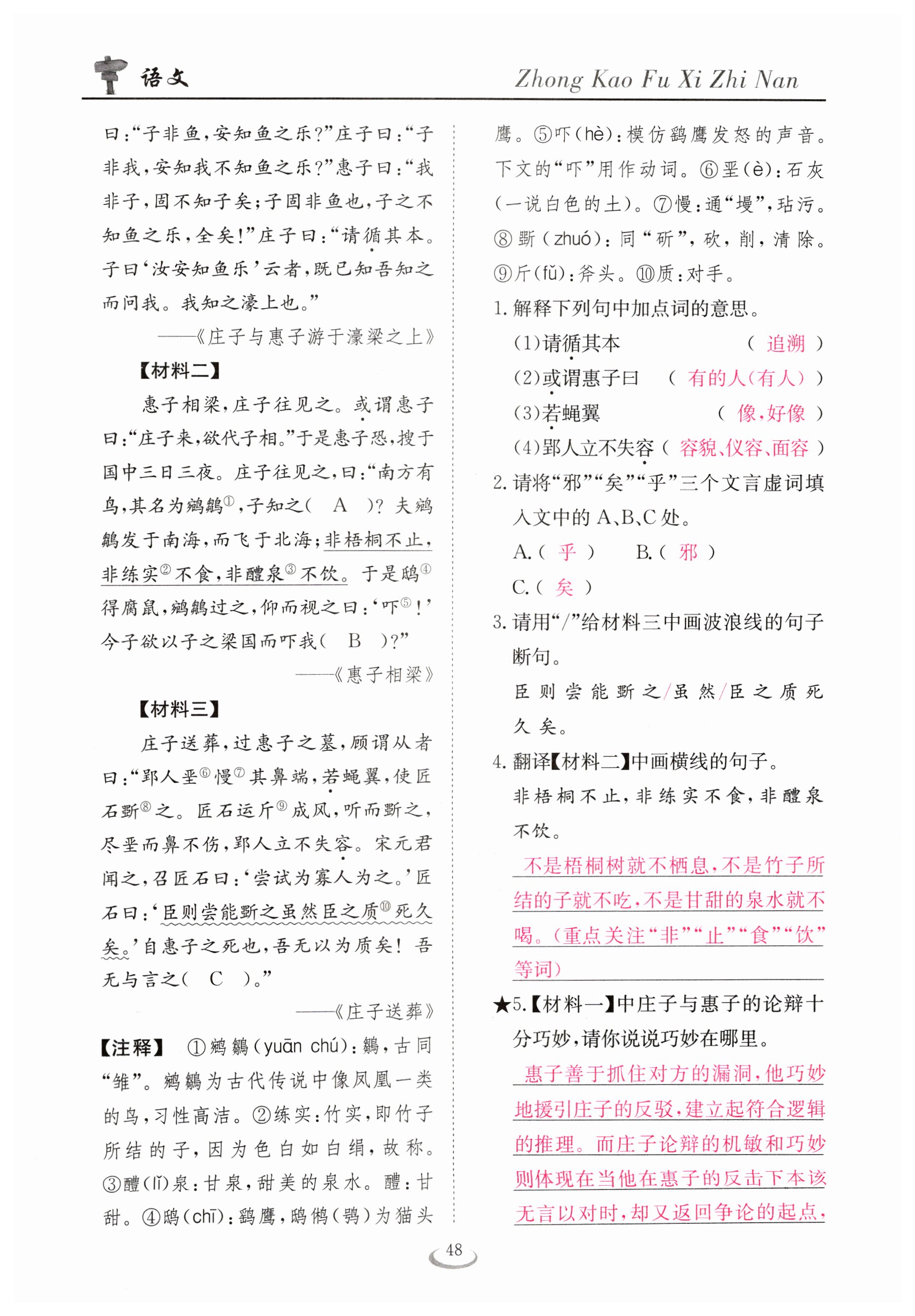 注:目前有些书本章节名称可能整理的还不是很完善,但都是按照顺序排列的,请同学们按照顺序仔细查找。练习册 2023年中考复习指南长江少年儿童出版社语文宜昌专版 答案主要是用来给同学们做完题方便对答案用的,请勿直接抄袭。