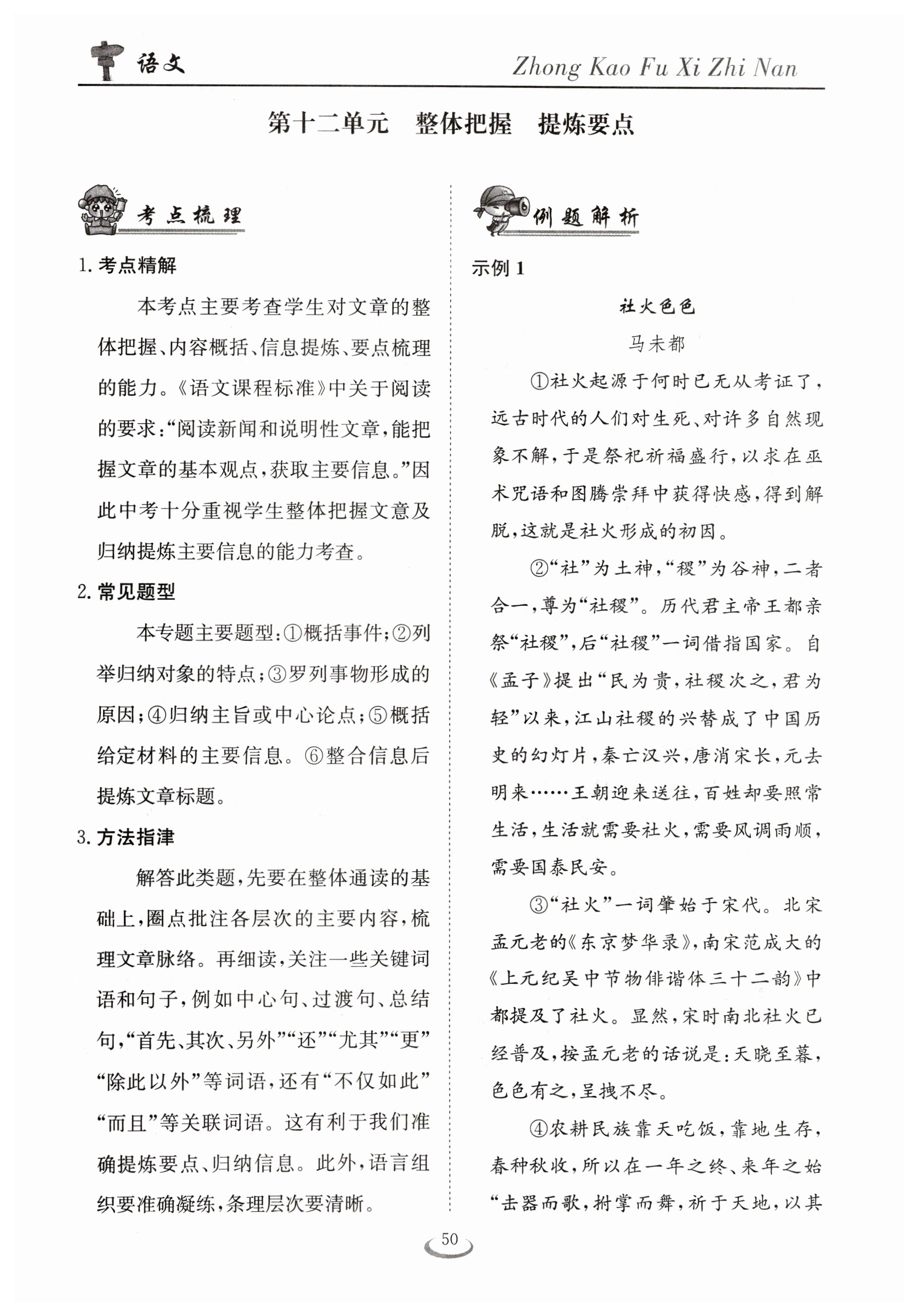 2023年中考复习指南长江少年儿童出版社语文宜昌专版