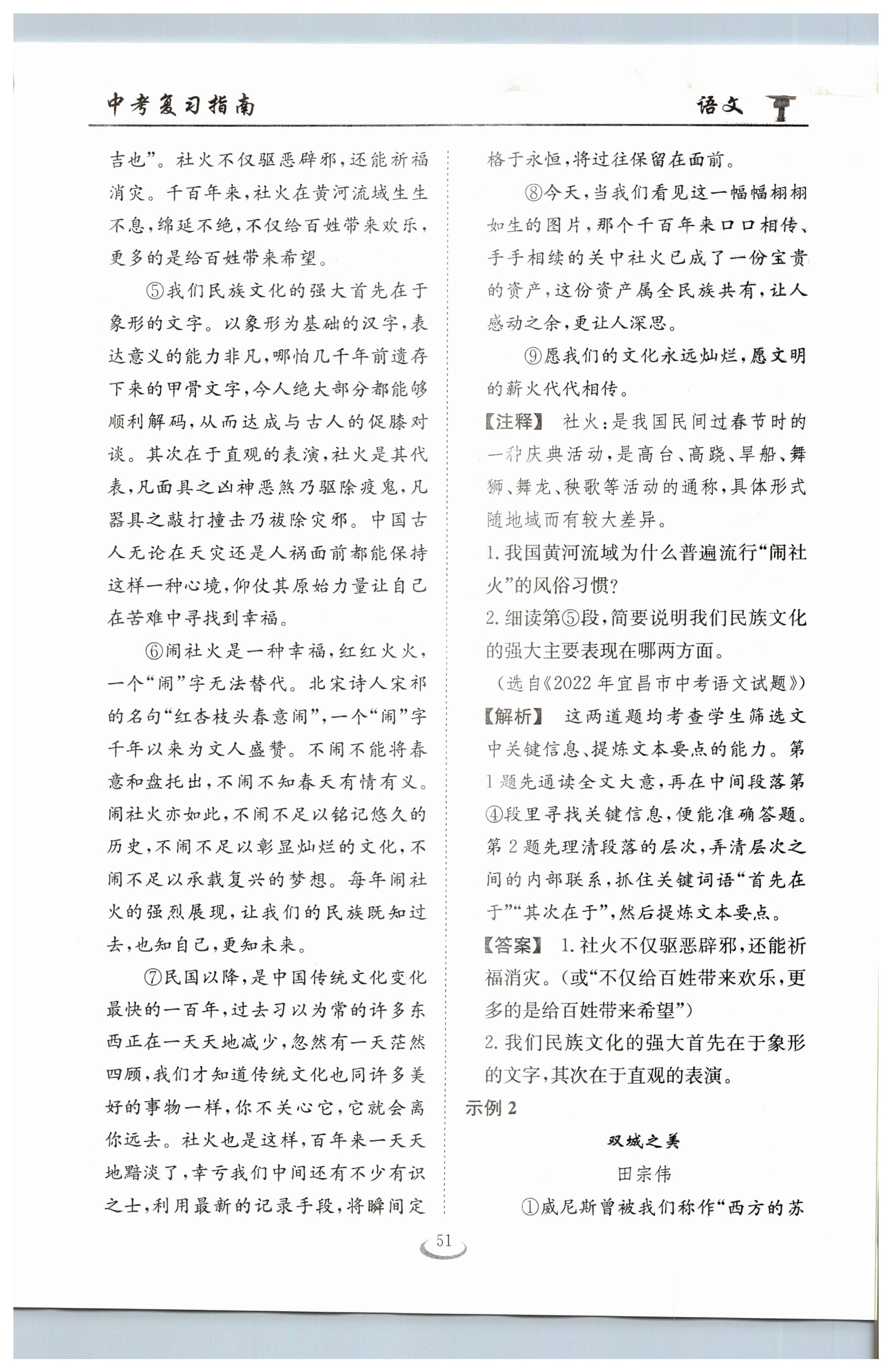 2023年中考复习指南长江少年儿童出版社语文宜昌专版