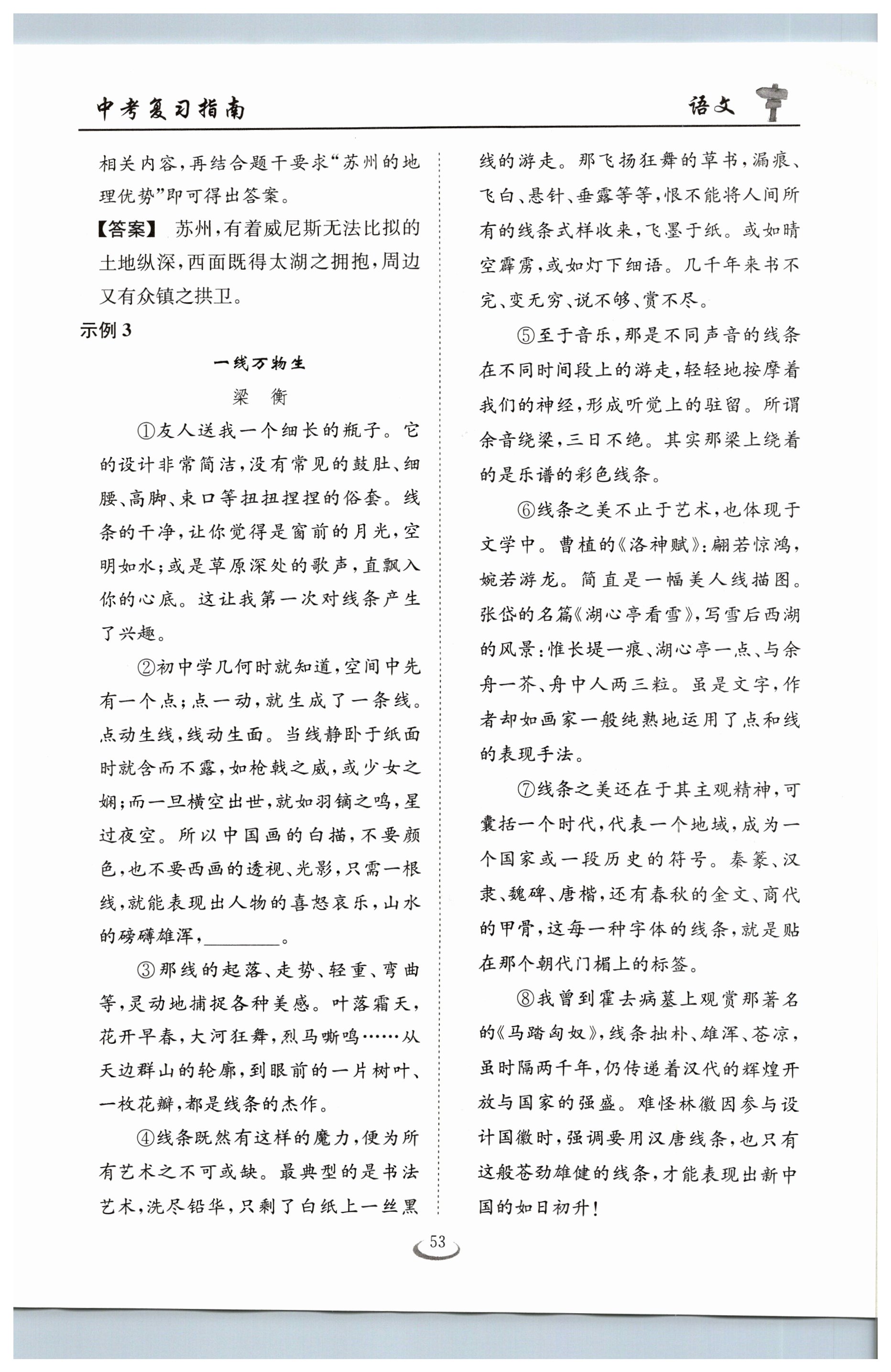 注:目前有些书本章节名称可能整理的还不是很完善,但都是按照顺序排列的,请同学们按照顺序仔细查找。练习册 2023年中考复习指南长江少年儿童出版社语文宜昌专版 答案主要是用来给同学们做完题方便对答案用的,请勿直接抄袭。