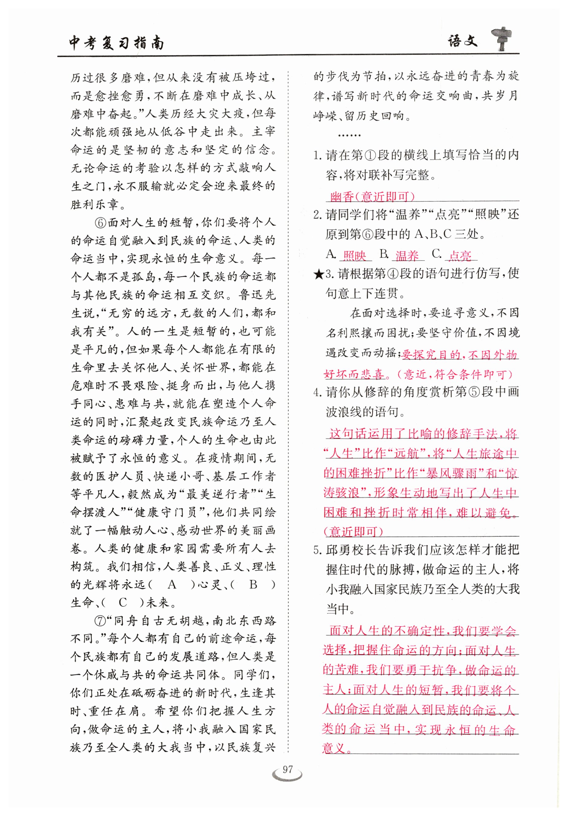 2023年中考复习指南长江少年儿童出版社语文宜昌专版