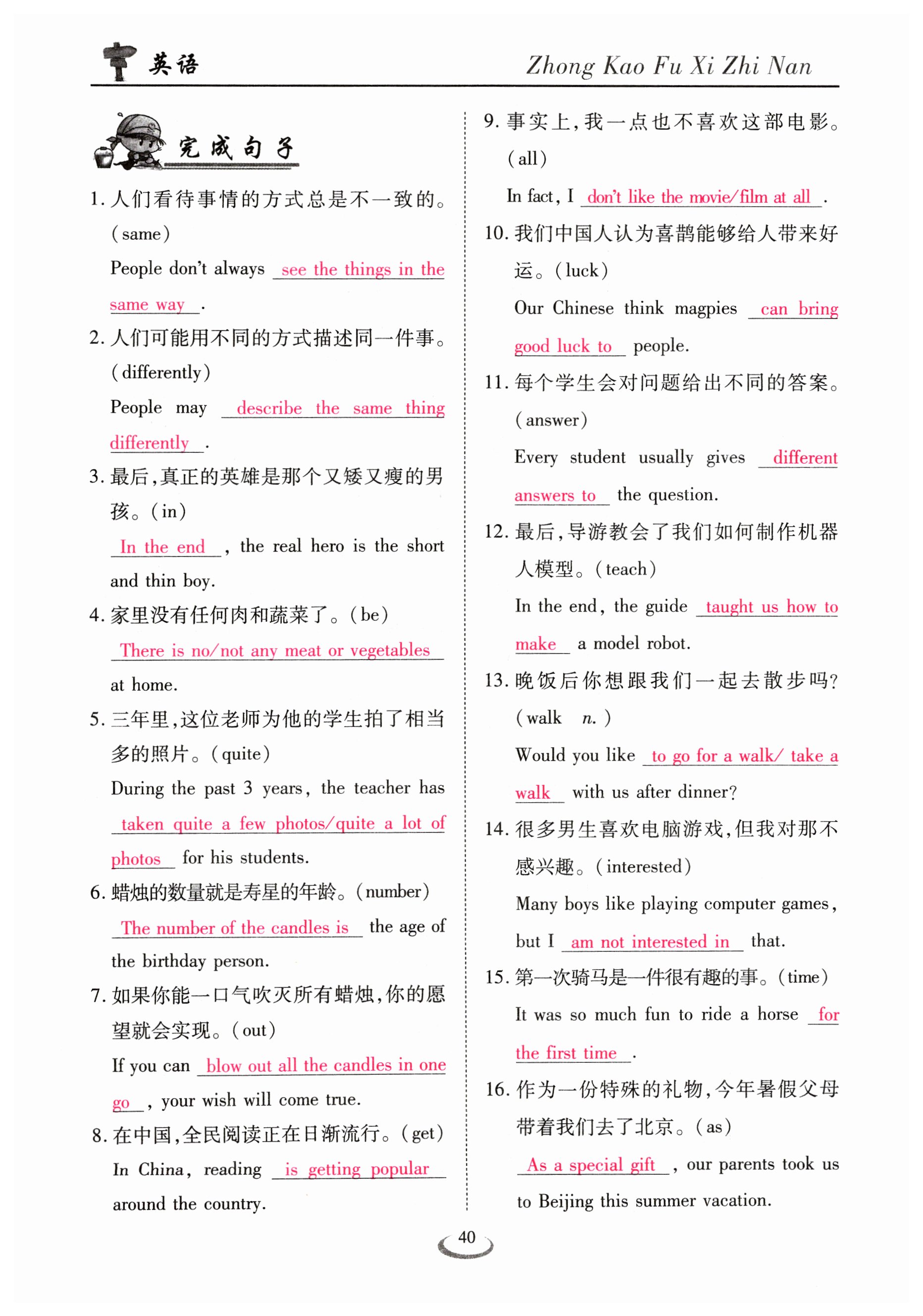 注:目前有些书本章节名称可能整理的还不是很完善,但都是按照顺序排列的,请同学们按照顺序仔细查找。练习册 2023年新中考复习指南长江少年儿童出版社英语宜昌专版 答案主要是用来给同学们做完题方便对答案用的,请勿直接抄袭。
