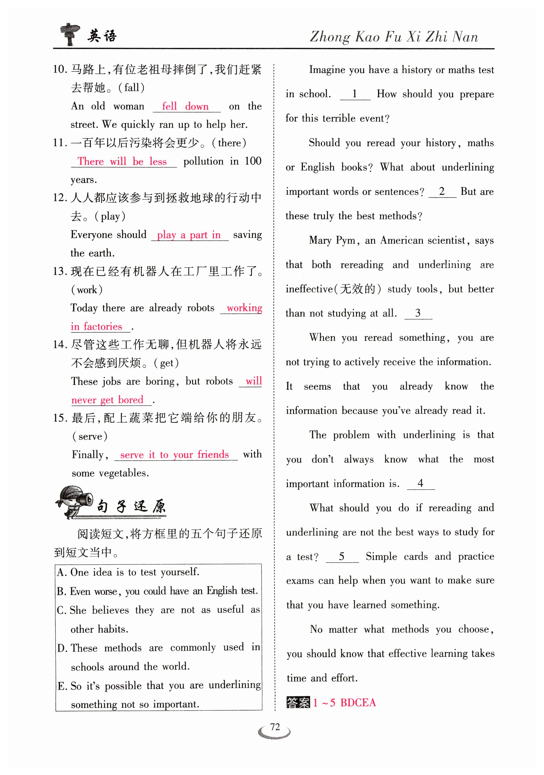注:目前有些书本章节名称可能整理的还不是很完善,但都是按照顺序排列的,请同学们按照顺序仔细查找。练习册 2023年新中考复习指南长江少年儿童出版社英语宜昌专版 答案主要是用来给同学们做完题方便对答案用的,请勿直接抄袭。
