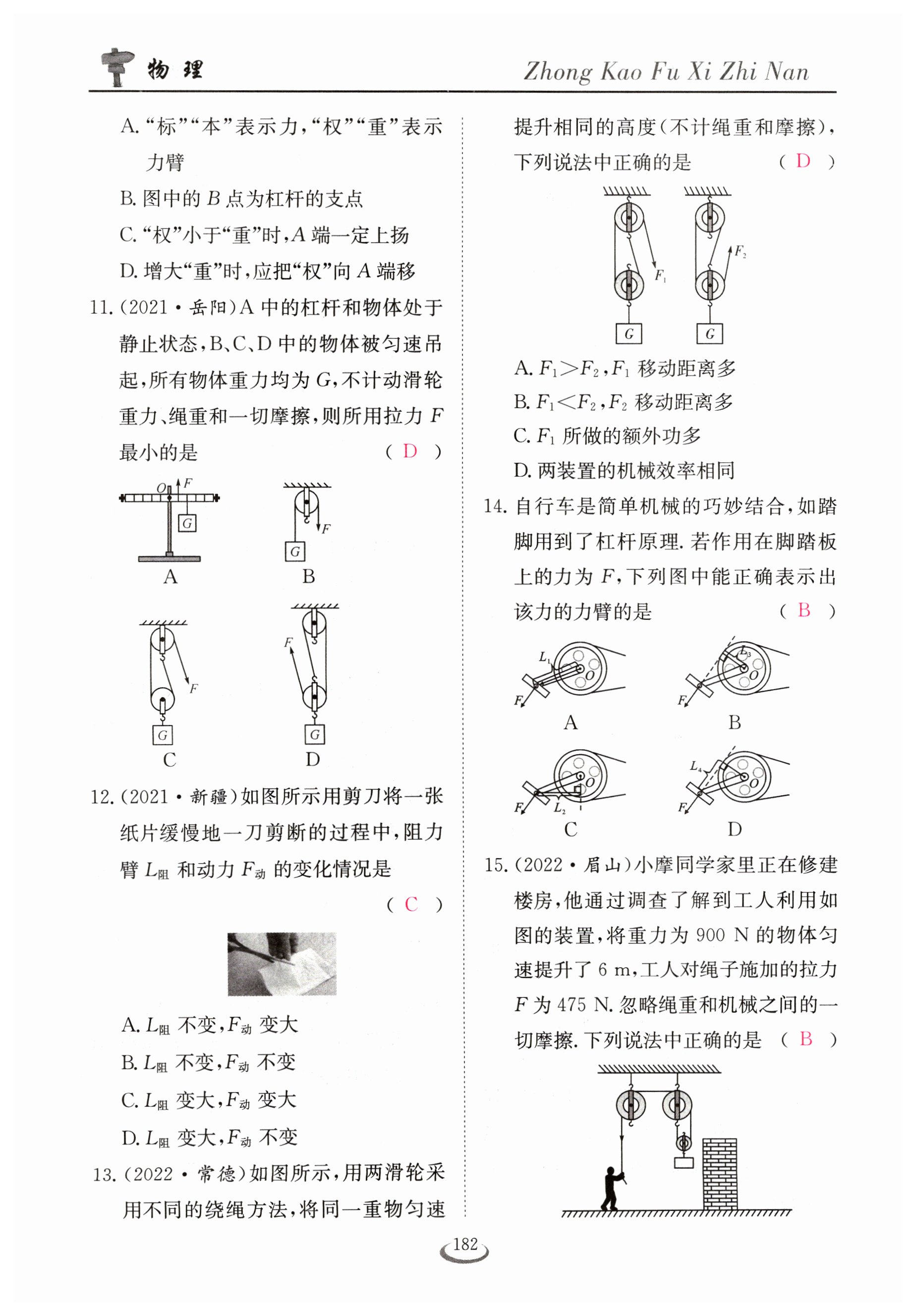 2023年中考复习指南长江少年儿童出版社物理宜昌专版
