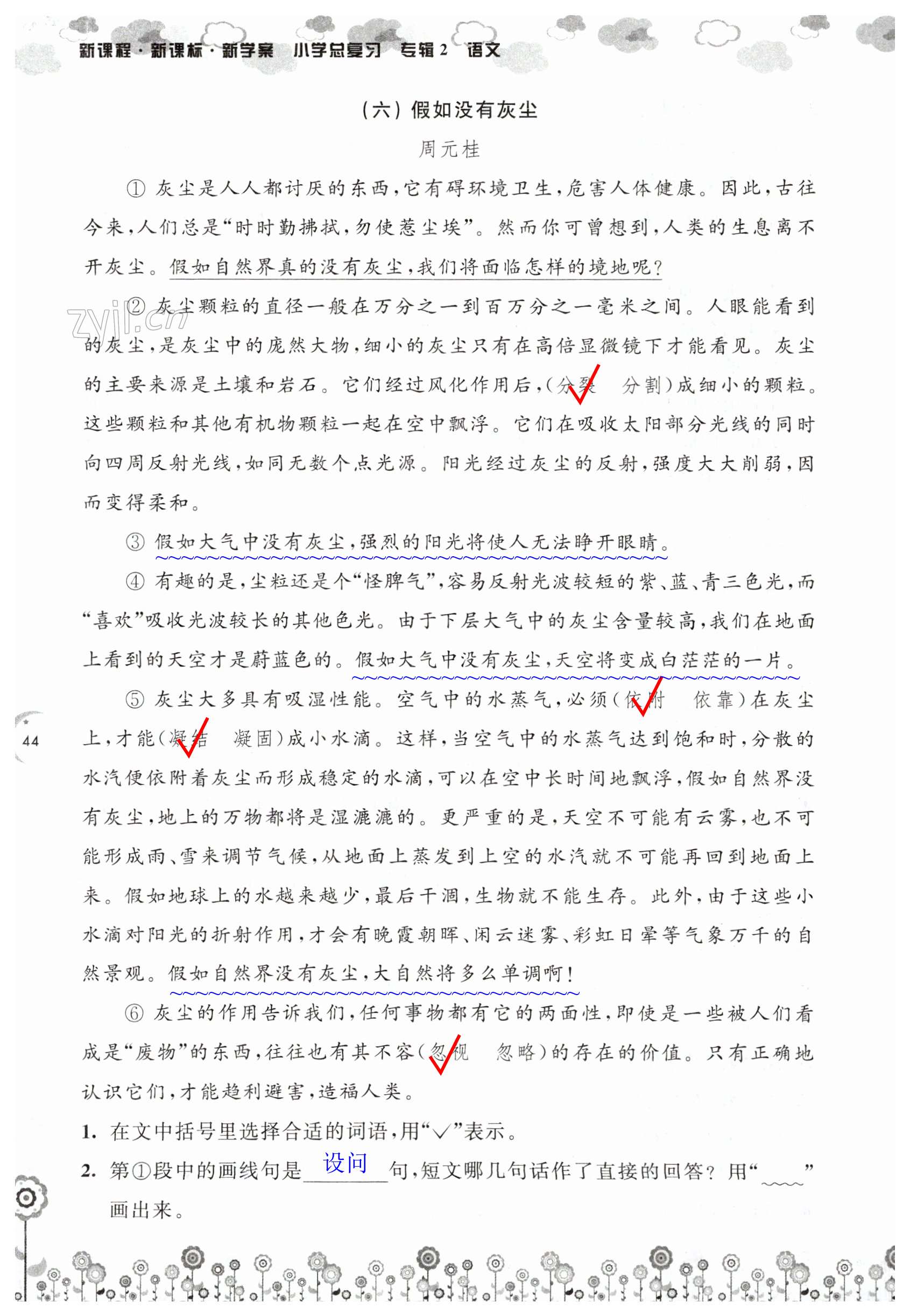 注:目前有些书本章节名称可能整理的还不是很完善,但都是按照顺序排列的,请同学们按照顺序仔细查找。练习册 2023年新课程新课标新学案小学总复习语文专辑2 答案主要是用来给同学们做完题方便对答案用的,请勿直接抄袭。