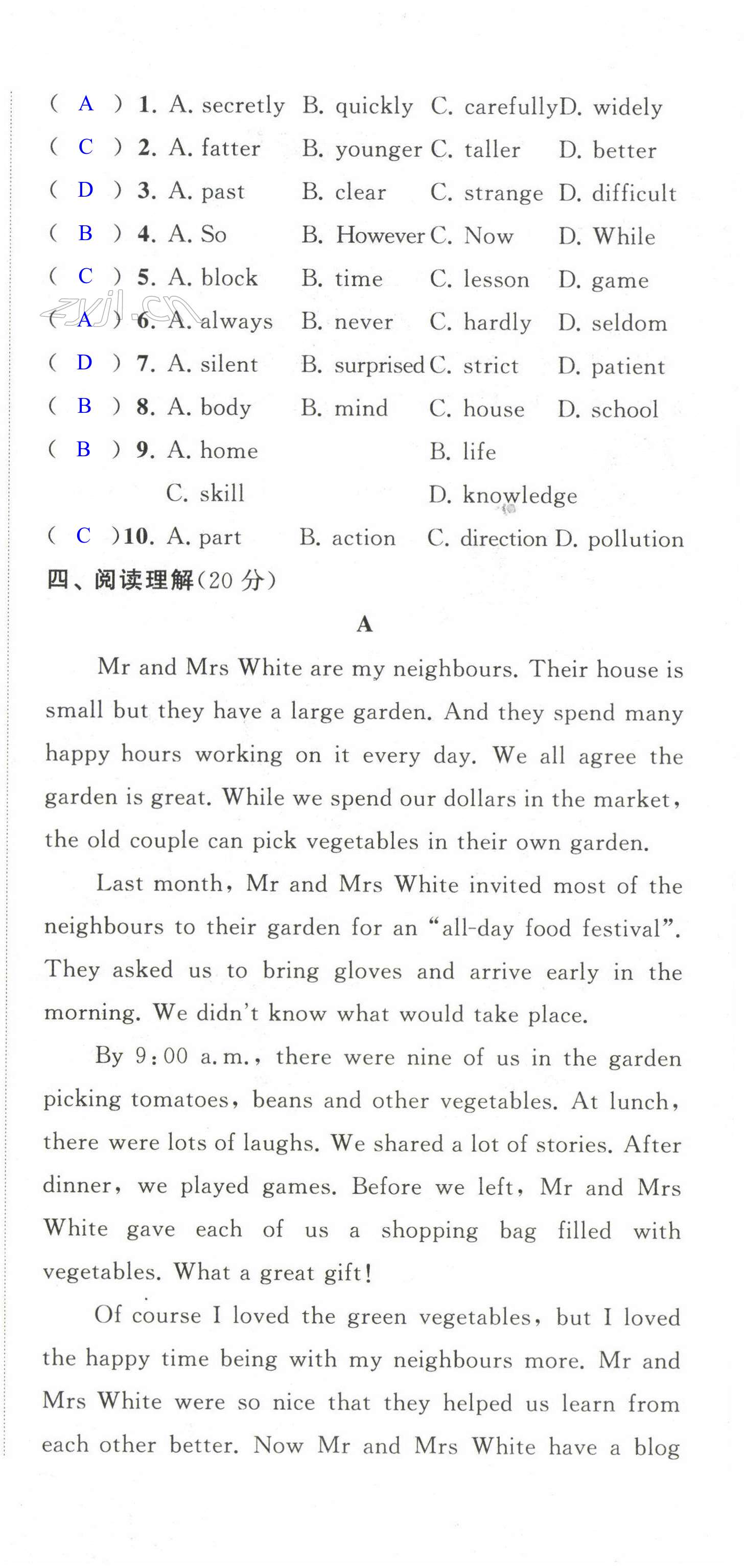 注:目前有些书本章节名称可能整理的还不是很完善,但都是按照顺序排列的,请同学们按照顺序仔细查找。练习册 2023年多维互动提优课堂八年级英语下册译林版提高版 答案主要是用来给同学们做完题方便对答案用的,请勿直接抄袭。