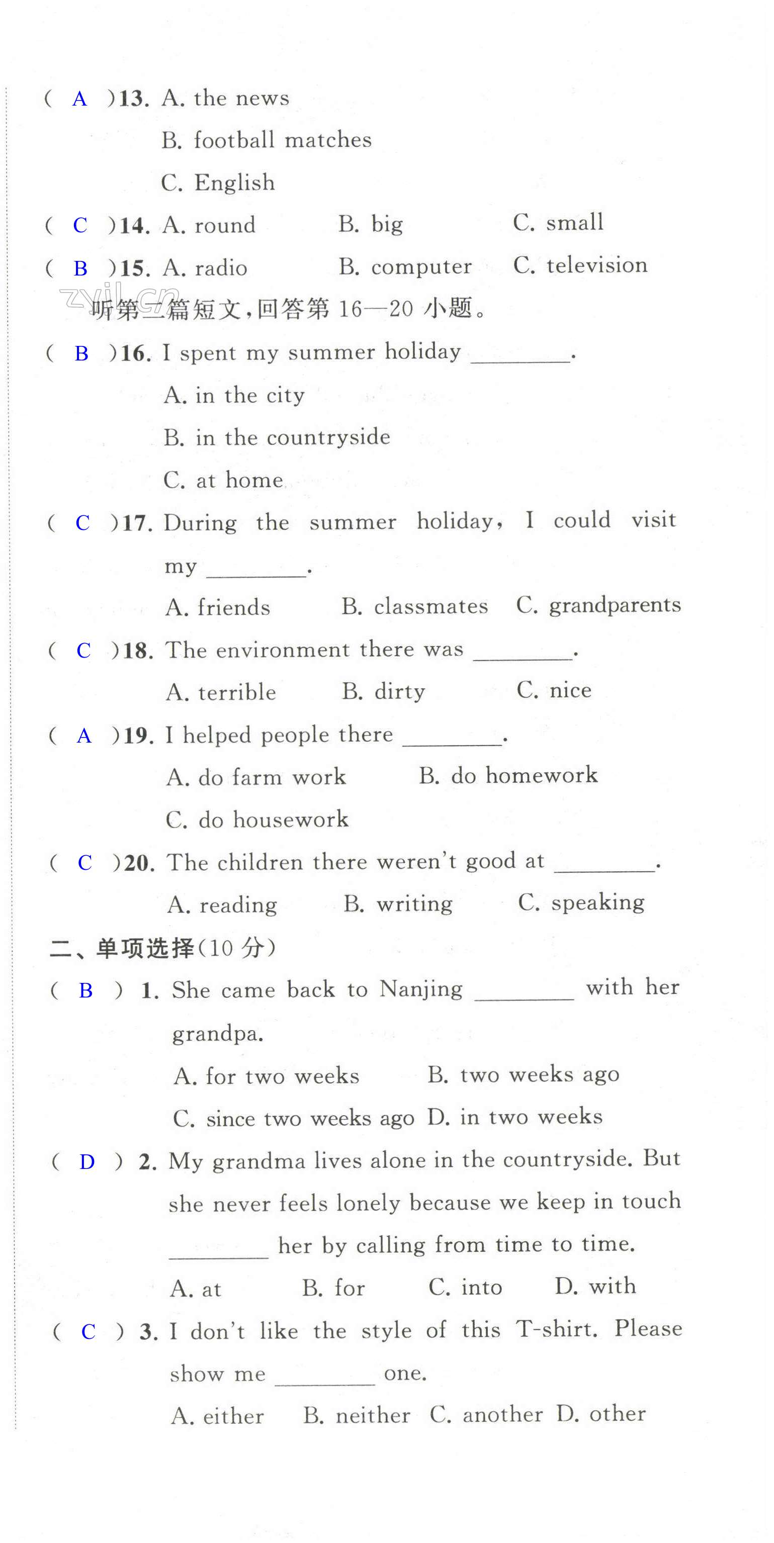 注:目前有些书本章节名称可能整理的还不是很完善,但都是按照顺序排列的,请同学们按照顺序仔细查找。练习册 2023年多维互动提优课堂八年级英语下册译林版提高版 答案主要是用来给同学们做完题方便对答案用的,请勿直接抄袭。