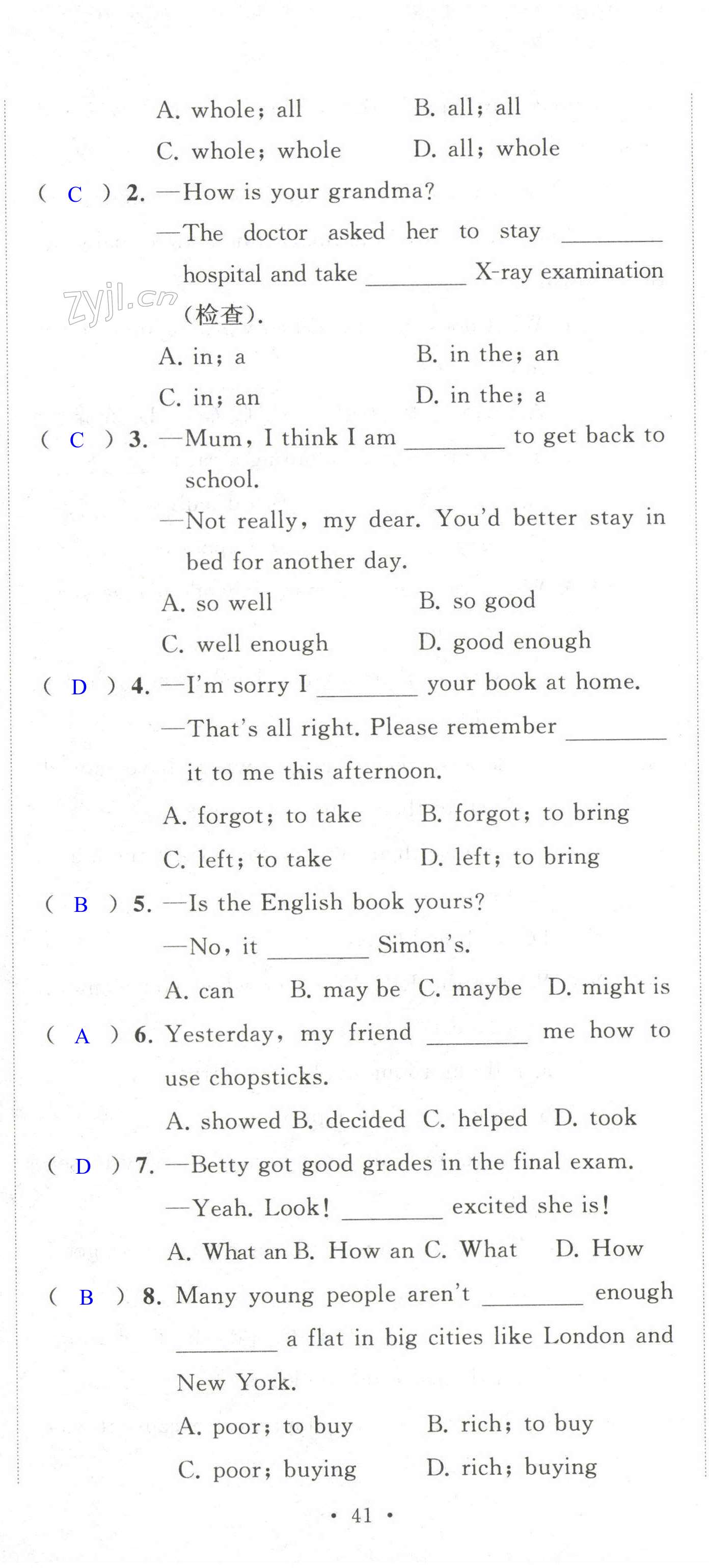 注:目前有些书本章节名称可能整理的还不是很完善,但都是按照顺序排列的,请同学们按照顺序仔细查找。练习册 2023年多维互动提优课堂七年级英语下册译林版提高版 答案主要是用来给同学们做完题方便对答案用的,请勿直接抄袭。