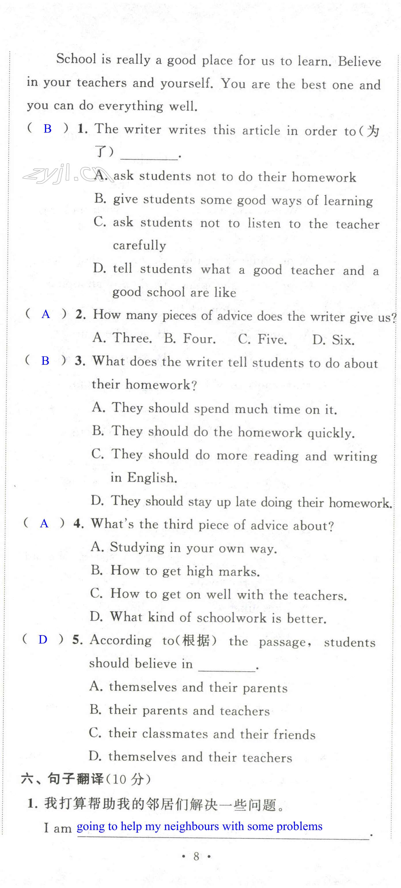 注:目前有些书本章节名称可能整理的还不是很完善,但都是按照顺序排列的,请同学们按照顺序仔细查找。练习册 2023年多维互动提优课堂七年级英语下册译林版提高版 答案主要是用来给同学们做完题方便对答案用的,请勿直接抄袭。