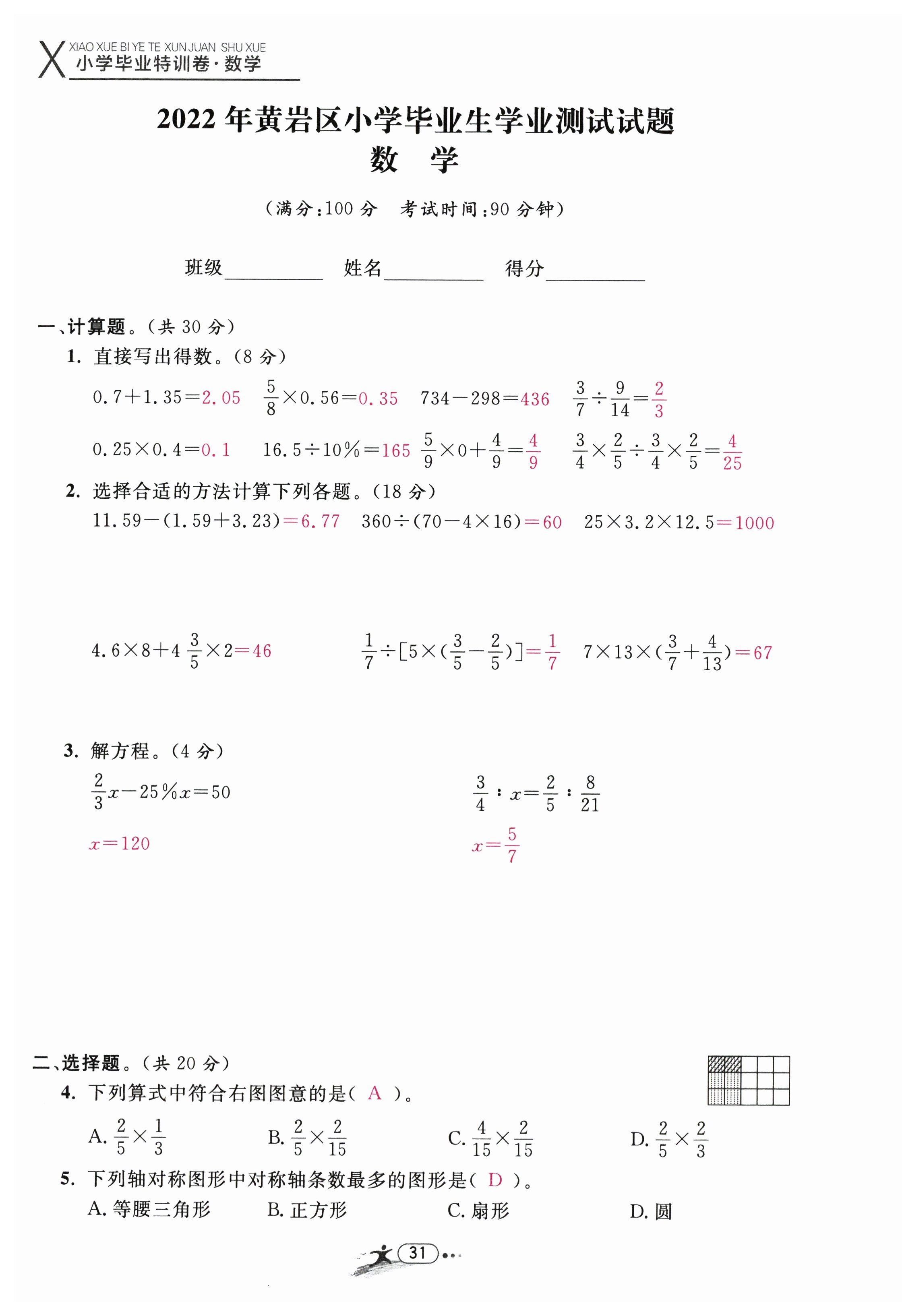 注:目前有些书本章节名称可能整理的还不是很完善,但都是按照顺序排列的,请同学们按照顺序仔细查找。练习册 2023年小学毕业特训卷六年级数学人教版台州专版 答案主要是用来给同学们做完题方便对答案用的,请勿直接抄袭。