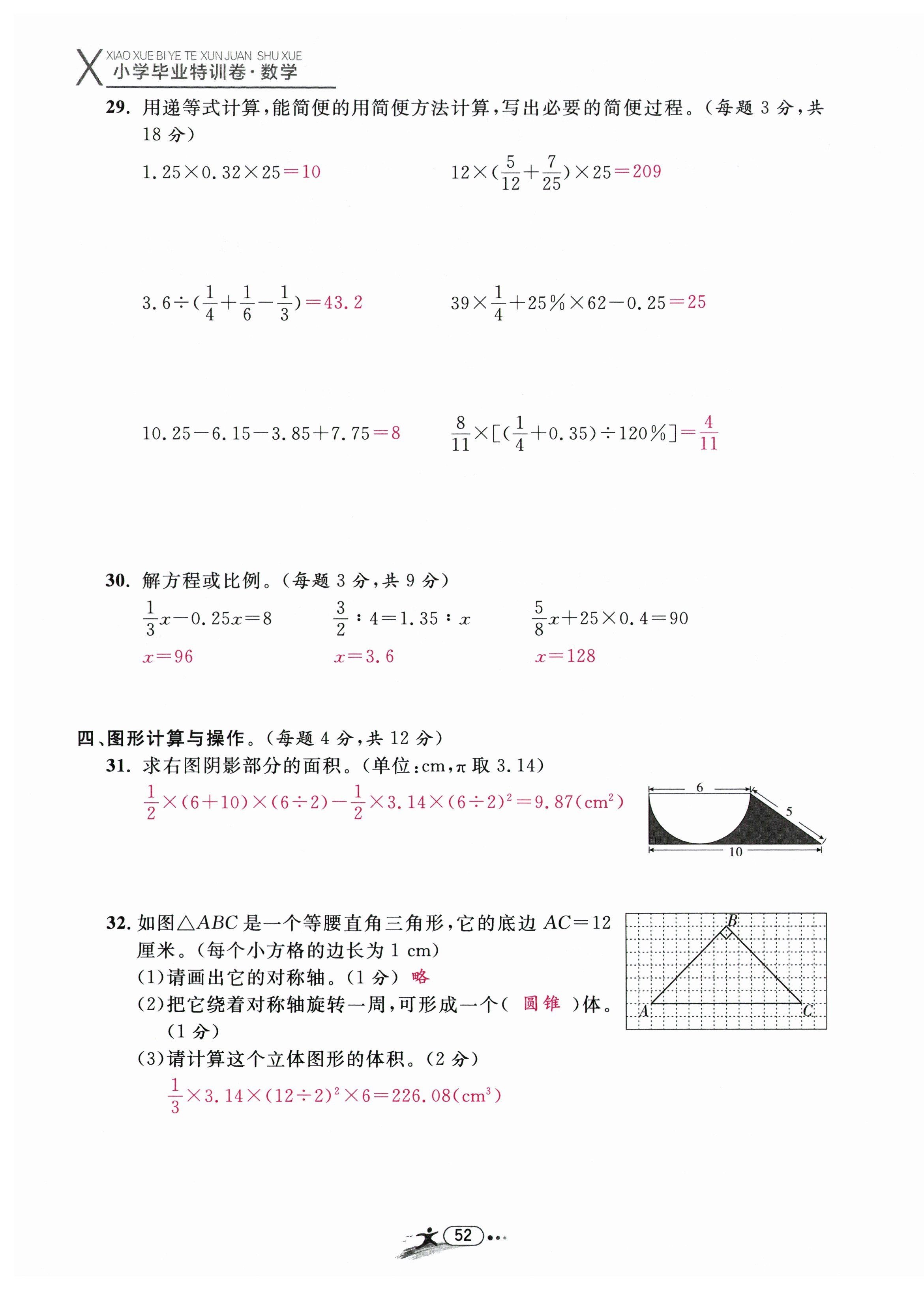 注:目前有些书本章节名称可能整理的还不是很完善,但都是按照顺序排列的,请同学们按照顺序仔细查找。练习册 2023年小学毕业特训卷六年级数学人教版台州专版 答案主要是用来给同学们做完题方便对答案用的,请勿直接抄袭。