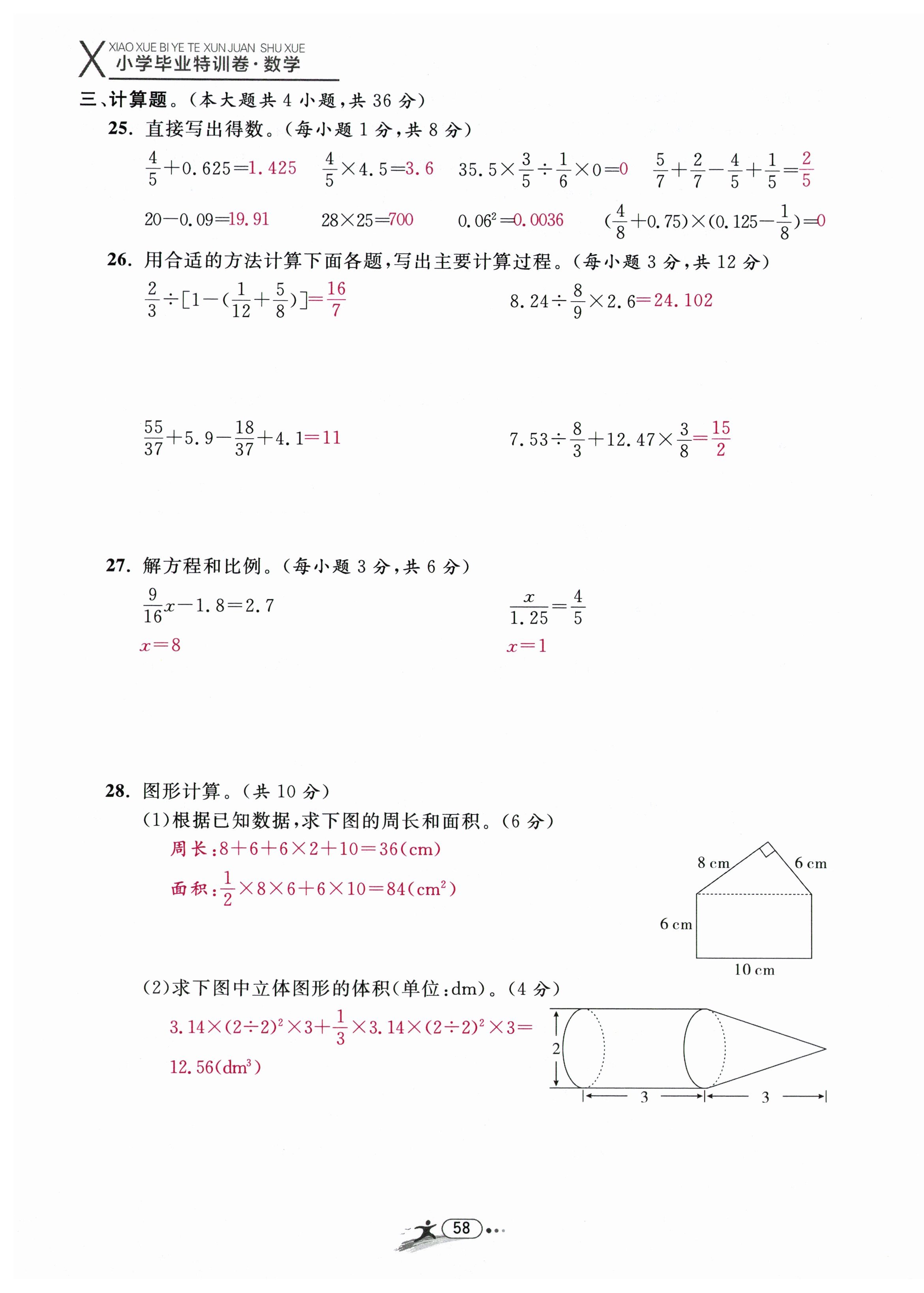 注:目前有些书本章节名称可能整理的还不是很完善,但都是按照顺序排列的,请同学们按照顺序仔细查找。练习册 2023年小学毕业特训卷六年级数学人教版台州专版 答案主要是用来给同学们做完题方便对答案用的,请勿直接抄袭。