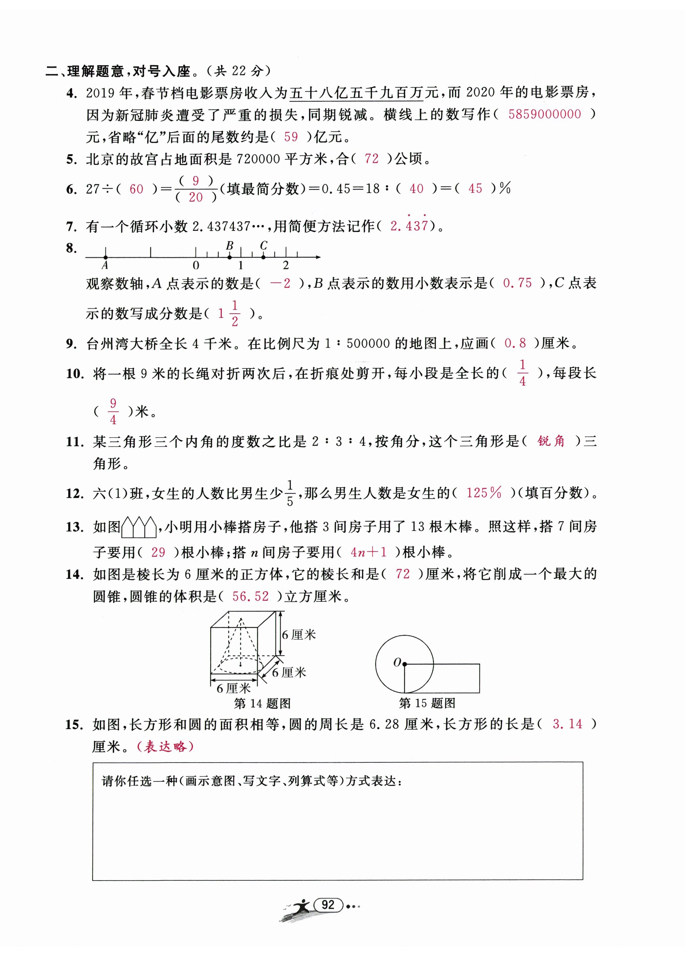 注:目前有些书本章节名称可能整理的还不是很完善,但都是按照顺序排列的,请同学们按照顺序仔细查找。练习册 2023年小学毕业特训卷六年级数学人教版台州专版 答案主要是用来给同学们做完题方便对答案用的,请勿直接抄袭。