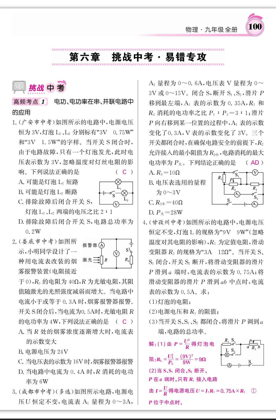 注:目前有些书本章节名称可能整理的还不是很完善,但都是按照顺序排列的,请同学们按照顺序仔细查找。练习册 2023年名校课堂内外九年级物理全一册教科版 答案主要是用来给同学们做完题方便对答案用的,请勿直接抄袭。