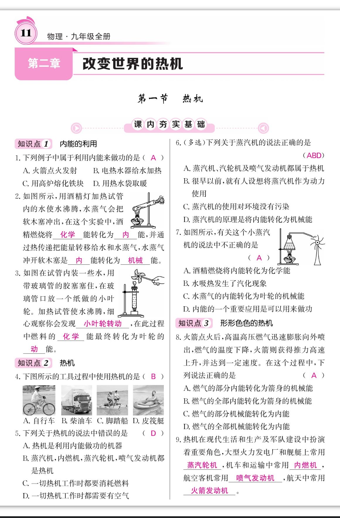 注:目前有些书本章节名称可能整理的还不是很完善,但都是按照顺序排列的,请同学们按照顺序仔细查找。练习册 2023年名校课堂内外九年级物理全一册教科版 答案主要是用来给同学们做完题方便对答案用的,请勿直接抄袭。