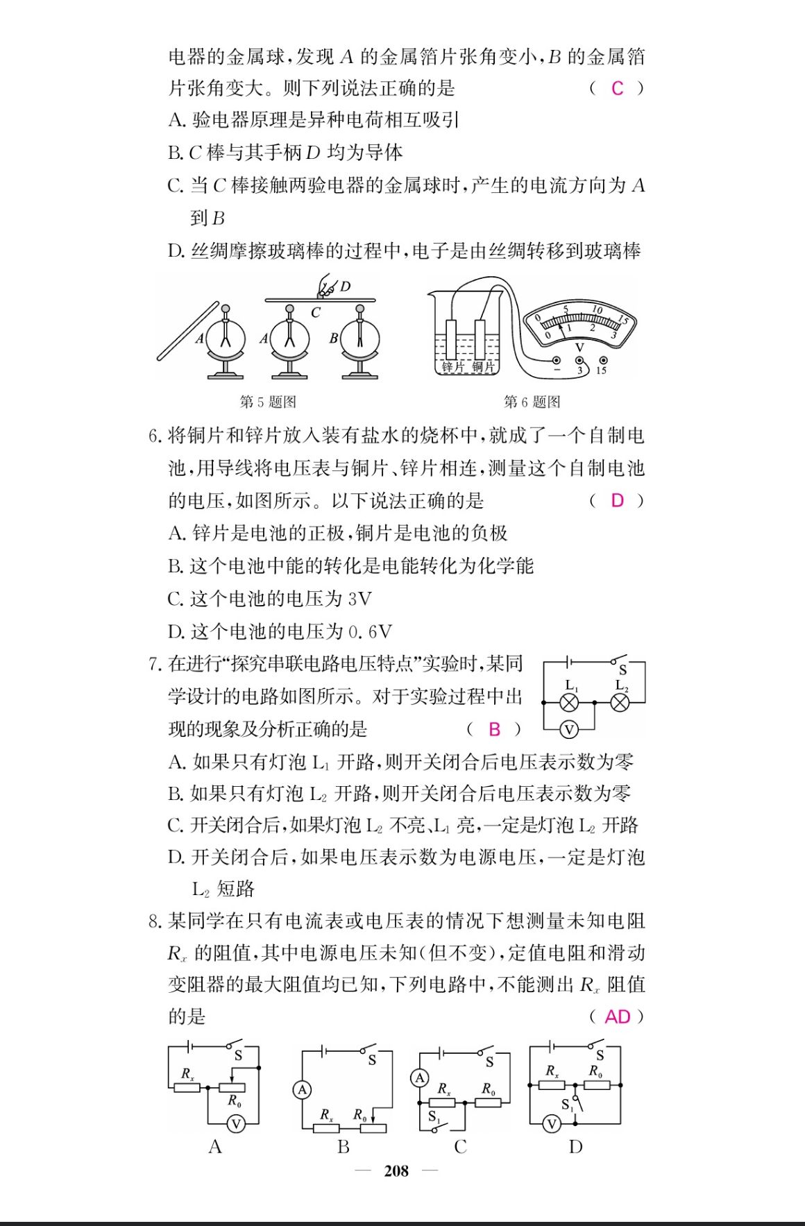 注:目前有些书本章节名称可能整理的还不是很完善,但都是按照顺序排列的,请同学们按照顺序仔细查找。练习册 2023年名校课堂内外九年级物理全一册教科版 答案主要是用来给同学们做完题方便对答案用的,请勿直接抄袭。