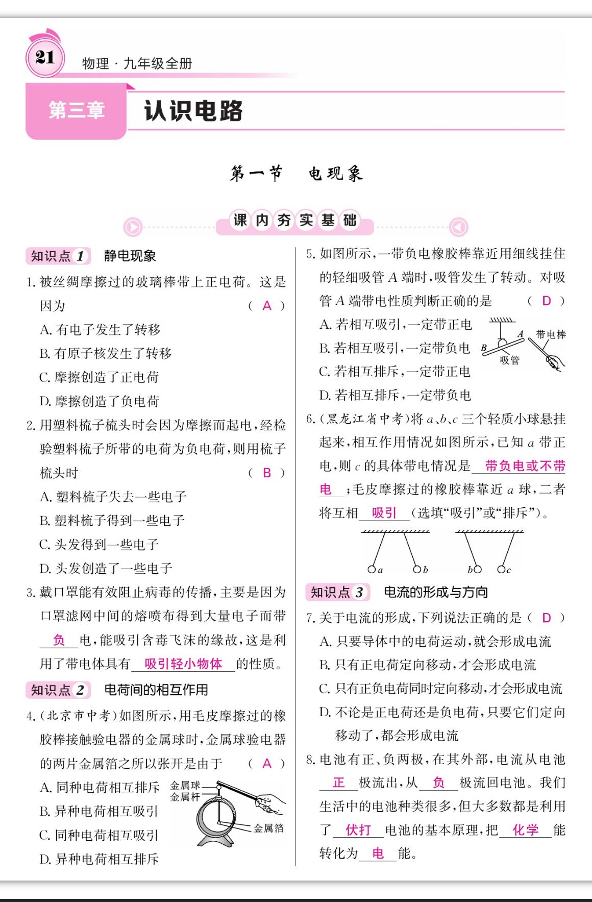 注:目前有些书本章节名称可能整理的还不是很完善,但都是按照顺序排列的,请同学们按照顺序仔细查找。练习册 2023年名校课堂内外九年级物理全一册教科版 答案主要是用来给同学们做完题方便对答案用的,请勿直接抄袭。