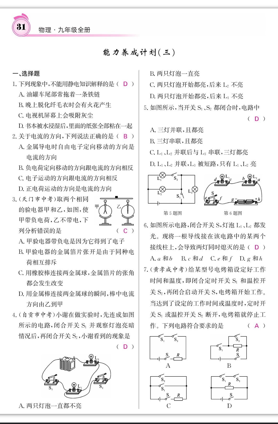注:目前有些书本章节名称可能整理的还不是很完善,但都是按照顺序排列的,请同学们按照顺序仔细查找。练习册 2023年名校课堂内外九年级物理全一册教科版 答案主要是用来给同学们做完题方便对答案用的,请勿直接抄袭。
