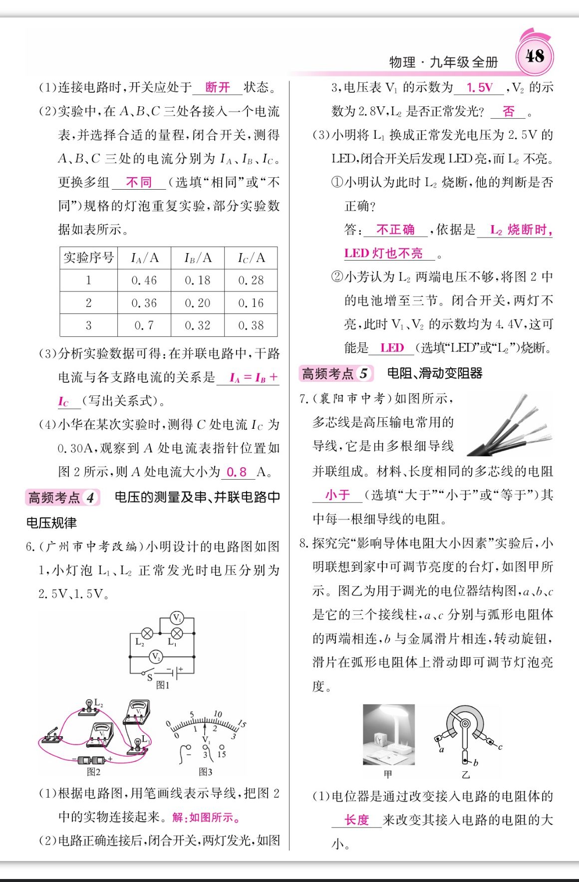 注:目前有些书本章节名称可能整理的还不是很完善,但都是按照顺序排列的,请同学们按照顺序仔细查找。练习册 2023年名校课堂内外九年级物理全一册教科版 答案主要是用来给同学们做完题方便对答案用的,请勿直接抄袭。