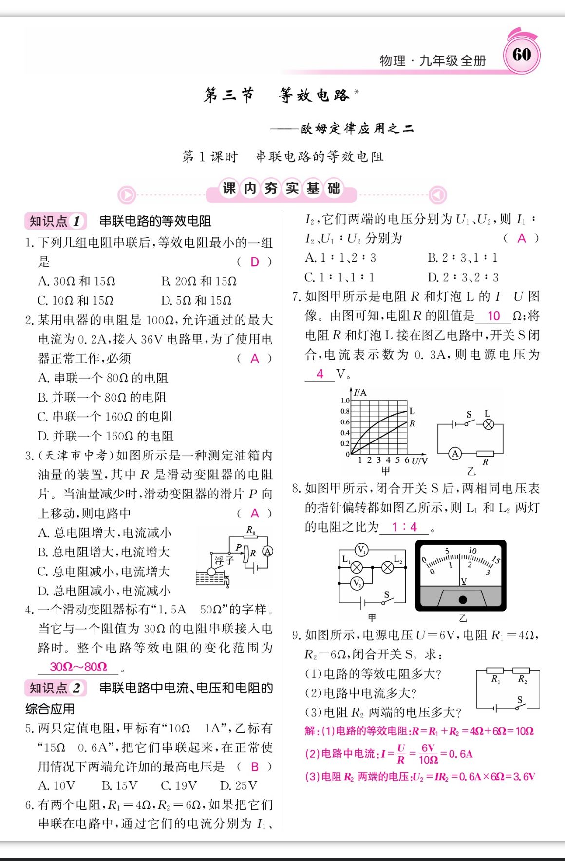 注:目前有些书本章节名称可能整理的还不是很完善,但都是按照顺序排列的,请同学们按照顺序仔细查找。练习册 2023年名校课堂内外九年级物理全一册教科版 答案主要是用来给同学们做完题方便对答案用的,请勿直接抄袭。