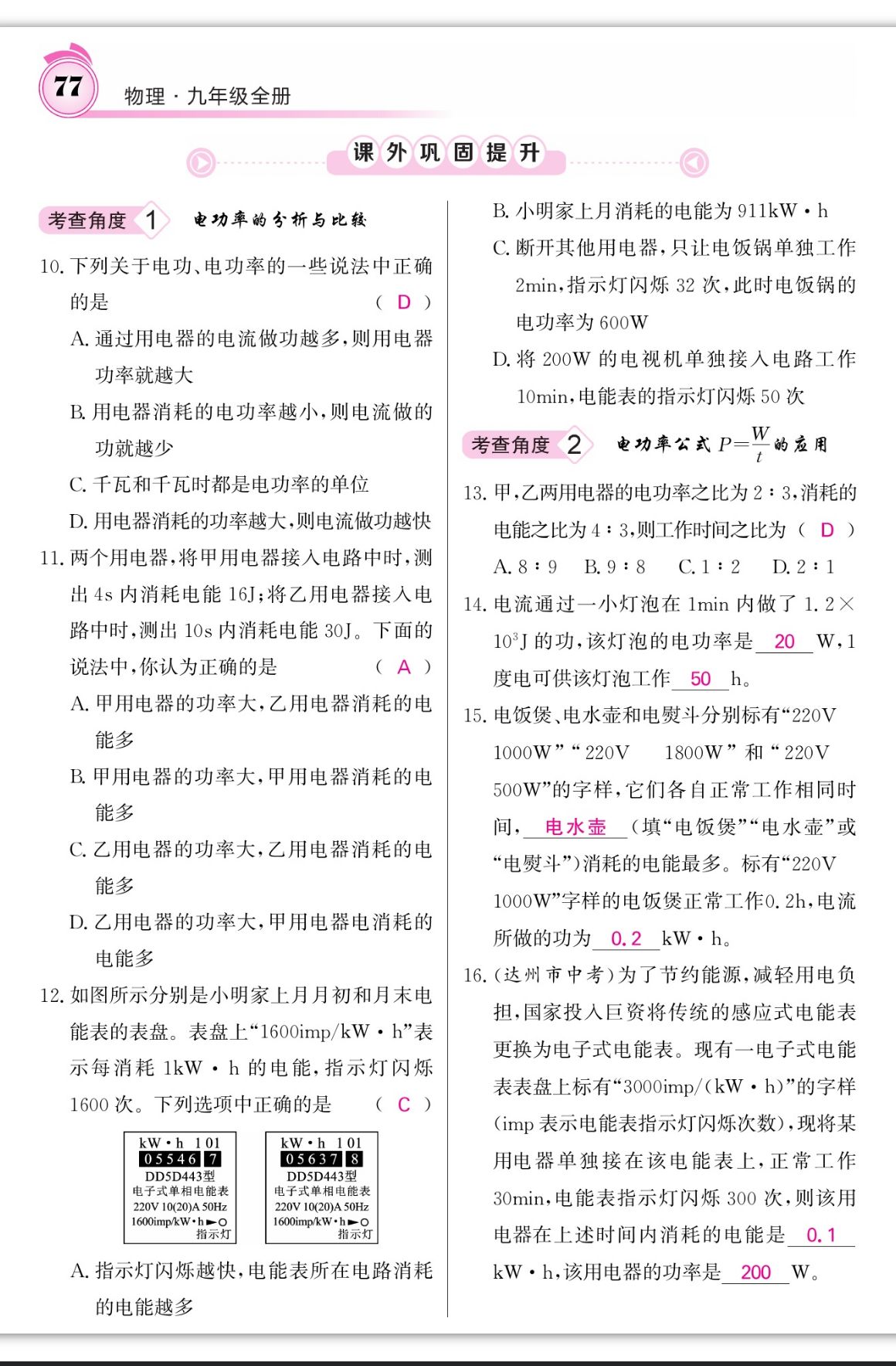 注:目前有些书本章节名称可能整理的还不是很完善,但都是按照顺序排列的,请同学们按照顺序仔细查找。练习册 2023年名校课堂内外九年级物理全一册教科版 答案主要是用来给同学们做完题方便对答案用的,请勿直接抄袭。