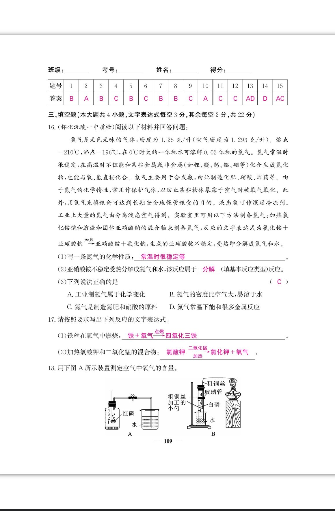 注:目前有些书本章节名称可能整理的还不是很完善,但都是按照顺序排列的,请同学们按照顺序仔细查找。练习册 2023年名校课堂内外九年级化学上册人教版湖南专版 答案主要是用来给同学们做完题方便对答案用的,请勿直接抄袭。