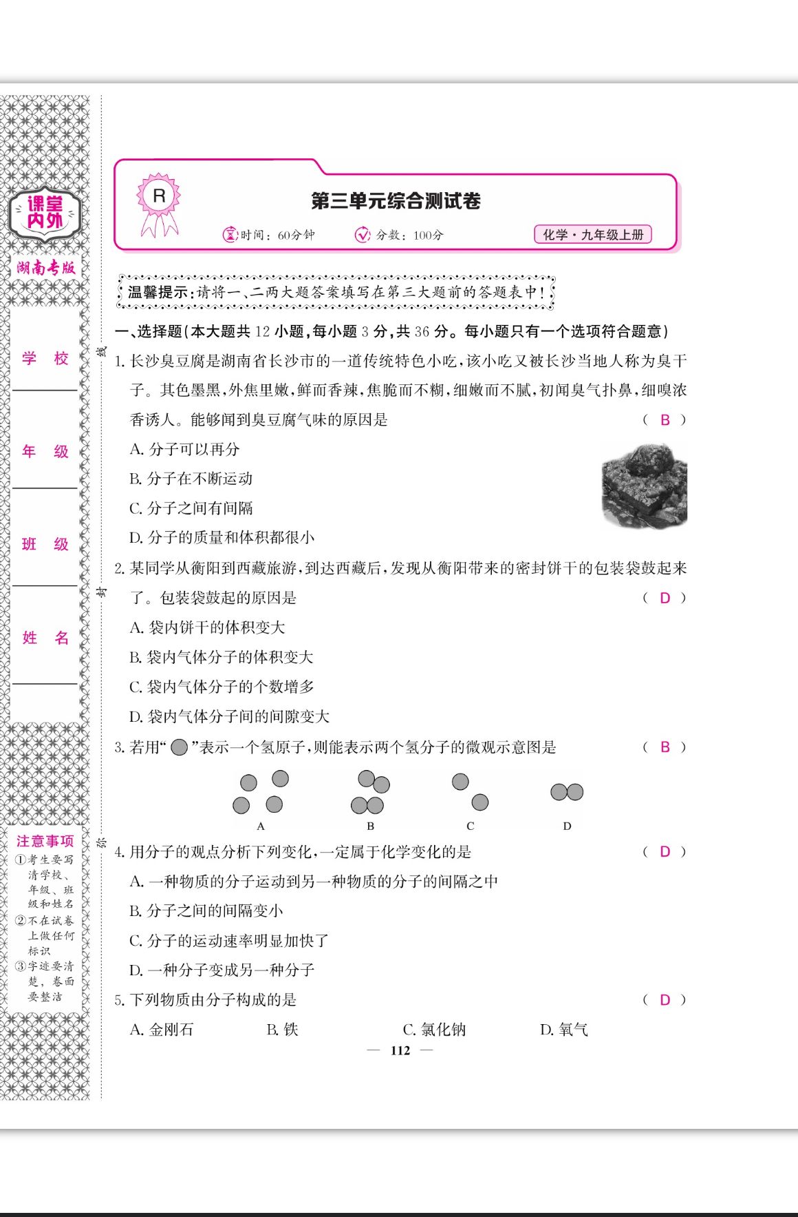 注:目前有些书本章节名称可能整理的还不是很完善,但都是按照顺序排列的,请同学们按照顺序仔细查找。练习册 2023年名校课堂内外九年级化学上册人教版湖南专版 答案主要是用来给同学们做完题方便对答案用的,请勿直接抄袭。