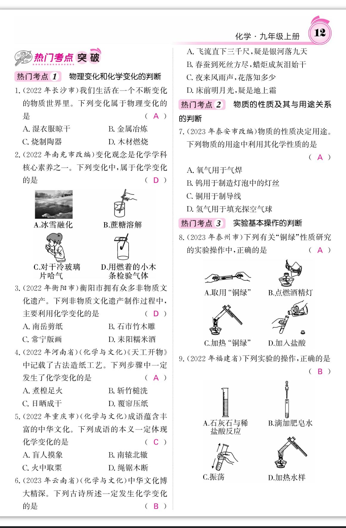 注:目前有些书本章节名称可能整理的还不是很完善,但都是按照顺序排列的,请同学们按照顺序仔细查找。练习册 2023年名校课堂内外九年级化学上册人教版湖南专版 答案主要是用来给同学们做完题方便对答案用的,请勿直接抄袭。