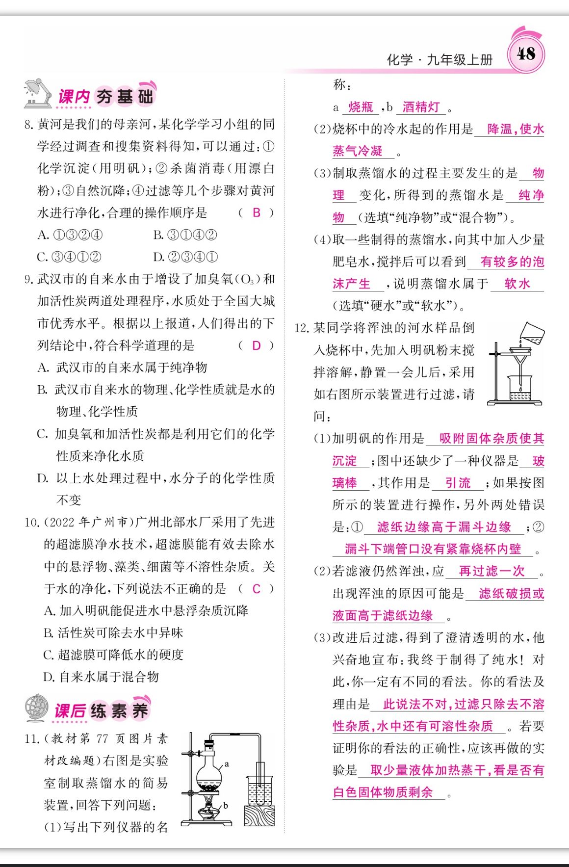 注:目前有些书本章节名称可能整理的还不是很完善,但都是按照顺序排列的,请同学们按照顺序仔细查找。练习册 2023年名校课堂内外九年级化学上册人教版湖南专版 答案主要是用来给同学们做完题方便对答案用的,请勿直接抄袭。