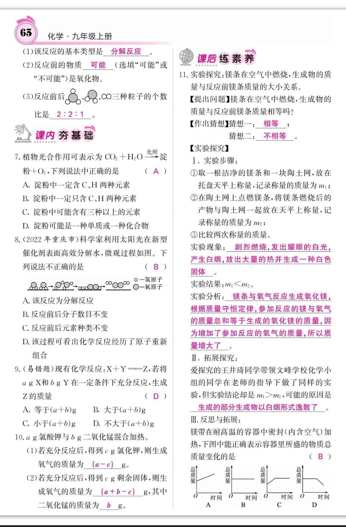 注:目前有些书本章节名称可能整理的还不是很完善,但都是按照顺序排列的,请同学们按照顺序仔细查找。练习册 2023年名校课堂内外九年级化学上册人教版湖南专版 答案主要是用来给同学们做完题方便对答案用的,请勿直接抄袭。