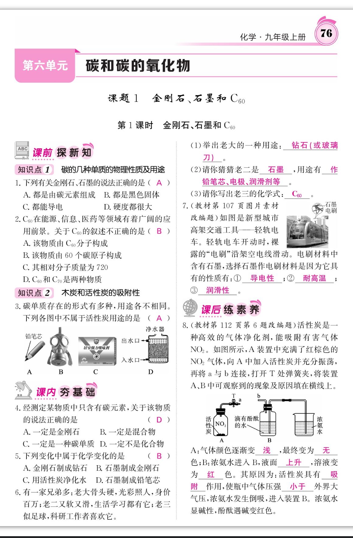 注:目前有些书本章节名称可能整理的还不是很完善,但都是按照顺序排列的,请同学们按照顺序仔细查找。练习册 2023年名校课堂内外九年级化学上册人教版湖南专版 答案主要是用来给同学们做完题方便对答案用的,请勿直接抄袭。