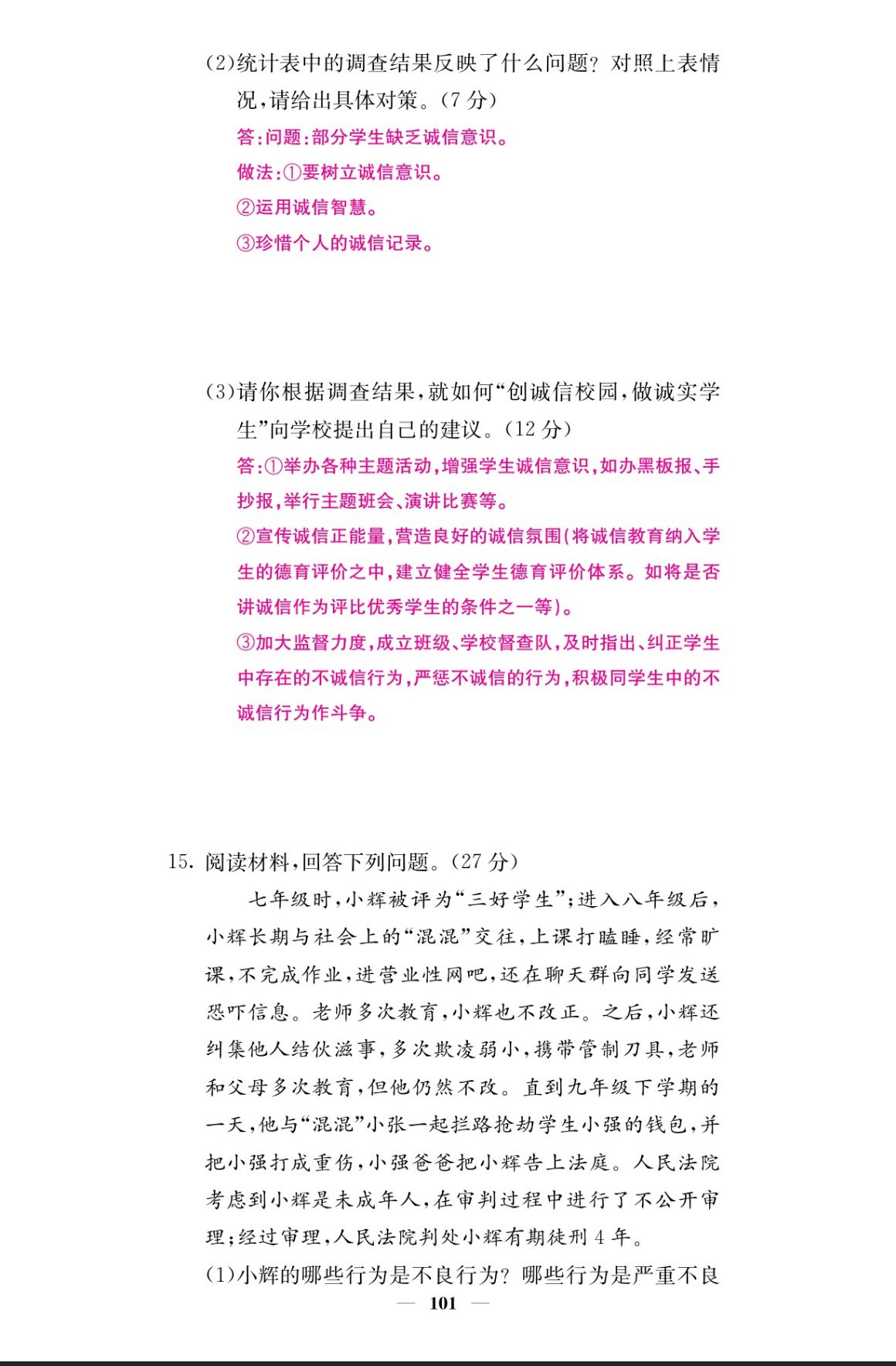 注:目前有些书本章节名称可能整理的还不是很完善,但都是按照顺序排列的,请同学们按照顺序仔细查找。练习册 2023年课堂点睛八年级道德与法治上册人教版 答案主要是用来给同学们做完题方便对答案用的,请勿直接抄袭。
