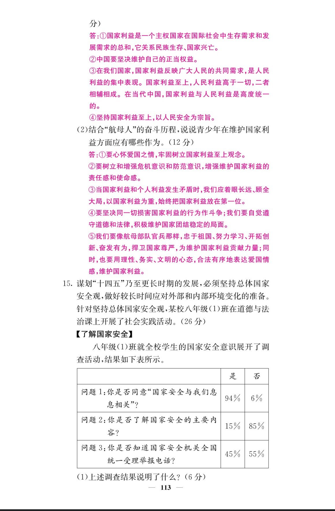 注:目前有些书本章节名称可能整理的还不是很完善,但都是按照顺序排列的,请同学们按照顺序仔细查找。练习册 2023年课堂点睛八年级道德与法治上册人教版 答案主要是用来给同学们做完题方便对答案用的,请勿直接抄袭。