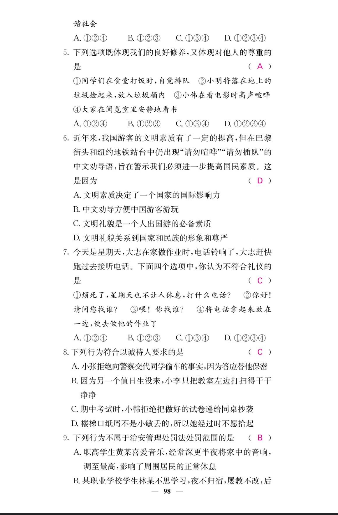 注:目前有些书本章节名称可能整理的还不是很完善,但都是按照顺序排列的,请同学们按照顺序仔细查找。练习册 2023年课堂点睛八年级道德与法治上册人教版 答案主要是用来给同学们做完题方便对答案用的,请勿直接抄袭。