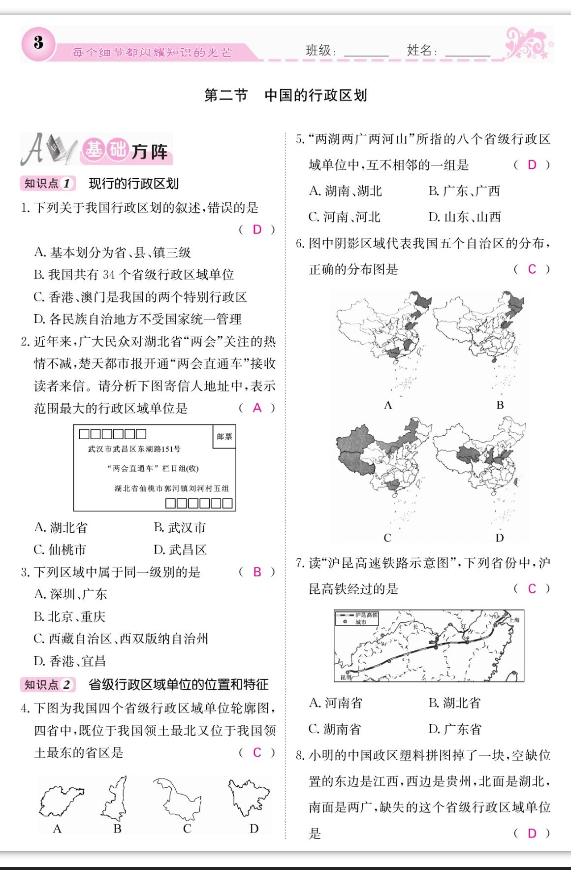 注:目前有些书本章节名称可能整理的还不是很完善,但都是按照顺序排列的,请同学们按照顺序仔细查找。练习册 2023年课堂点睛八年级地理上册湘教版 答案主要是用来给同学们做完题方便对答案用的,请勿直接抄袭。