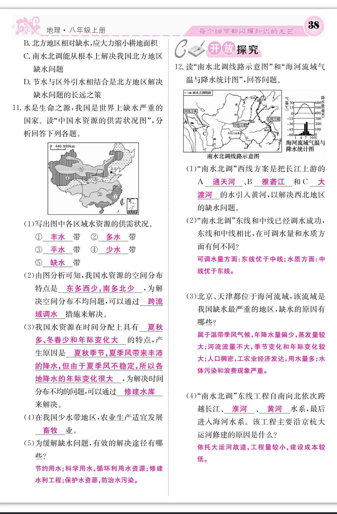 注:目前有些书本章节名称可能整理的还不是很完善,但都是按照顺序排列的,请同学们按照顺序仔细查找。练习册 2023年课堂点睛八年级地理上册湘教版 答案主要是用来给同学们做完题方便对答案用的,请勿直接抄袭。