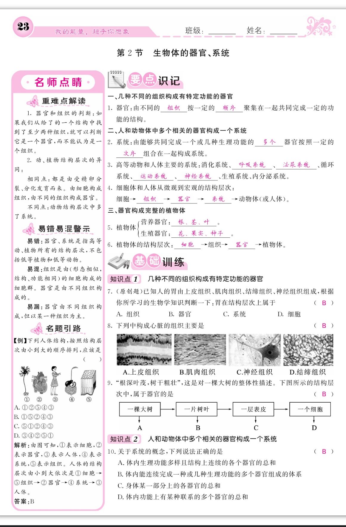 注:目前有些书本章节名称可能整理的还不是很完善,但都是按照顺序排列的,请同学们按照顺序仔细查找。练习册 2023年课堂点睛七年级生物上册北师大版 答案主要是用来给同学们做完题方便对答案用的,请勿直接抄袭。